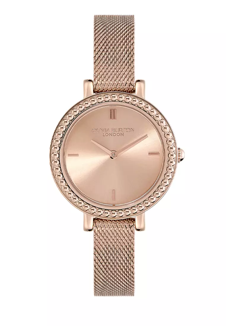 Olivia Burton 30mm Vintage Bead Rose Gold Mesh Watch - 24000162