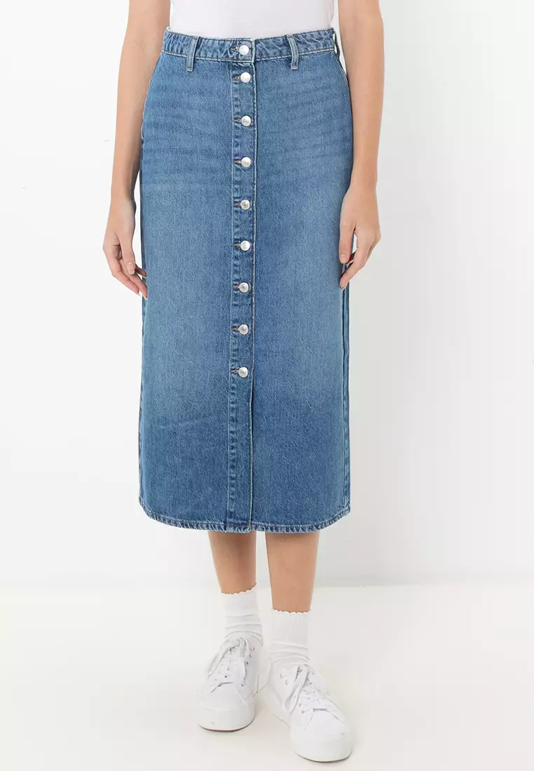 Cece Midi Button Denim Skirt