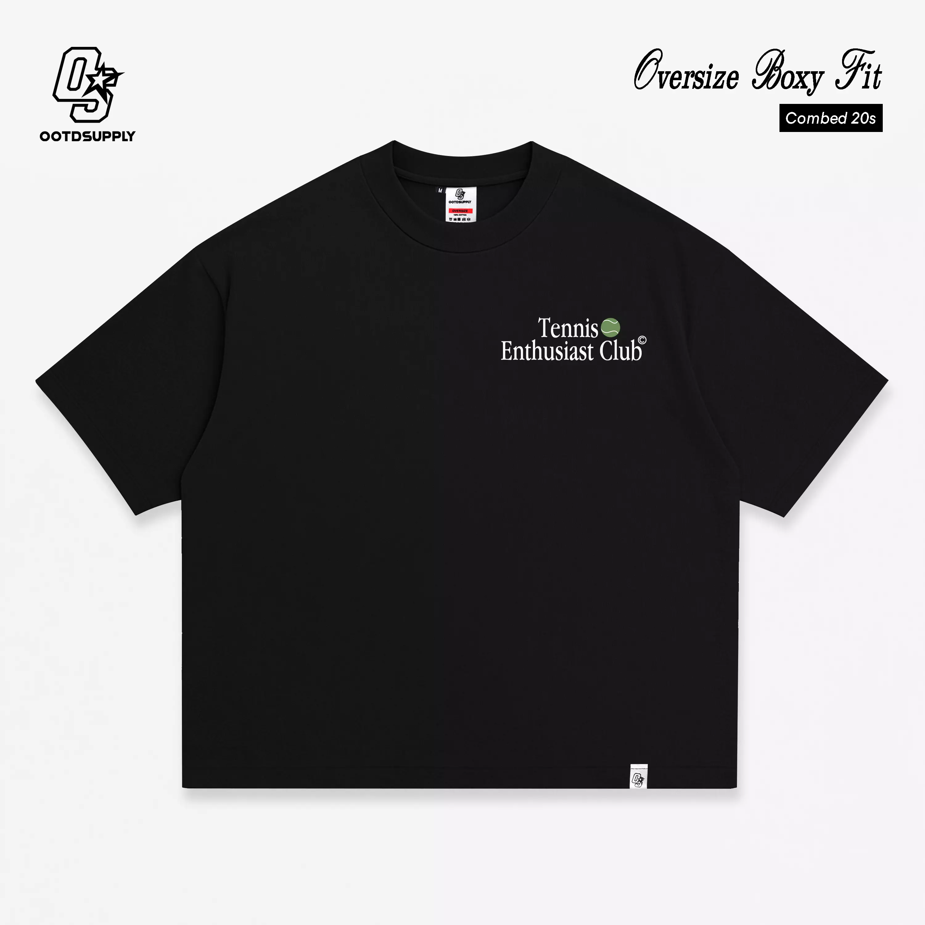 OOTDSUPPLY Boxy Fit Oversize Tennis Club Black l Tshirt Boxyfit l Kaos Boxy OVZBX039