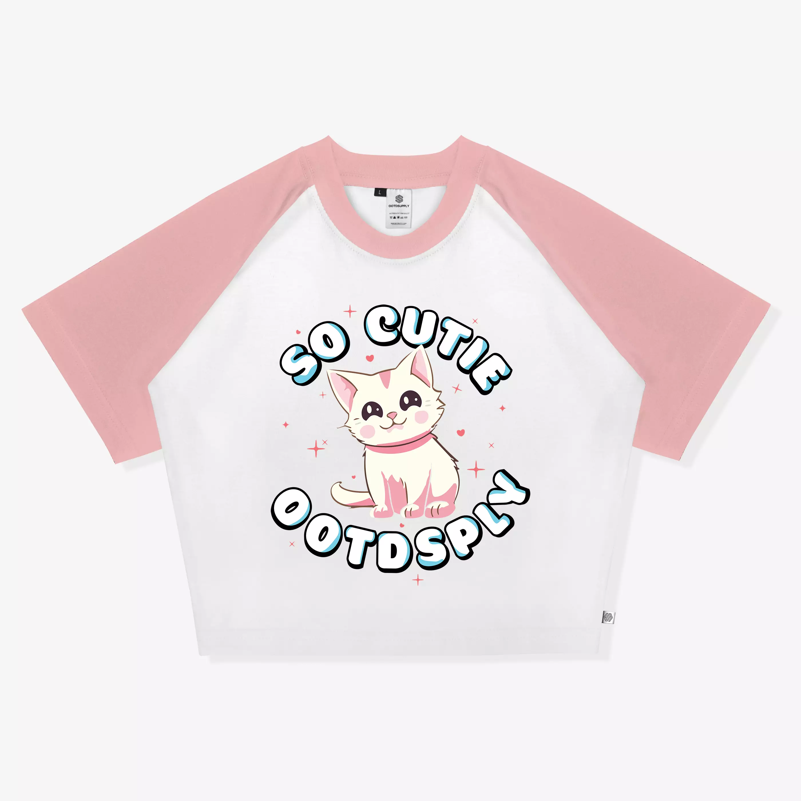 OOTDSUPPLY Croptee Fit Cutie Raglan Baby Blue & Dusty Pink | Croptee Slimfit Wanita CSF009