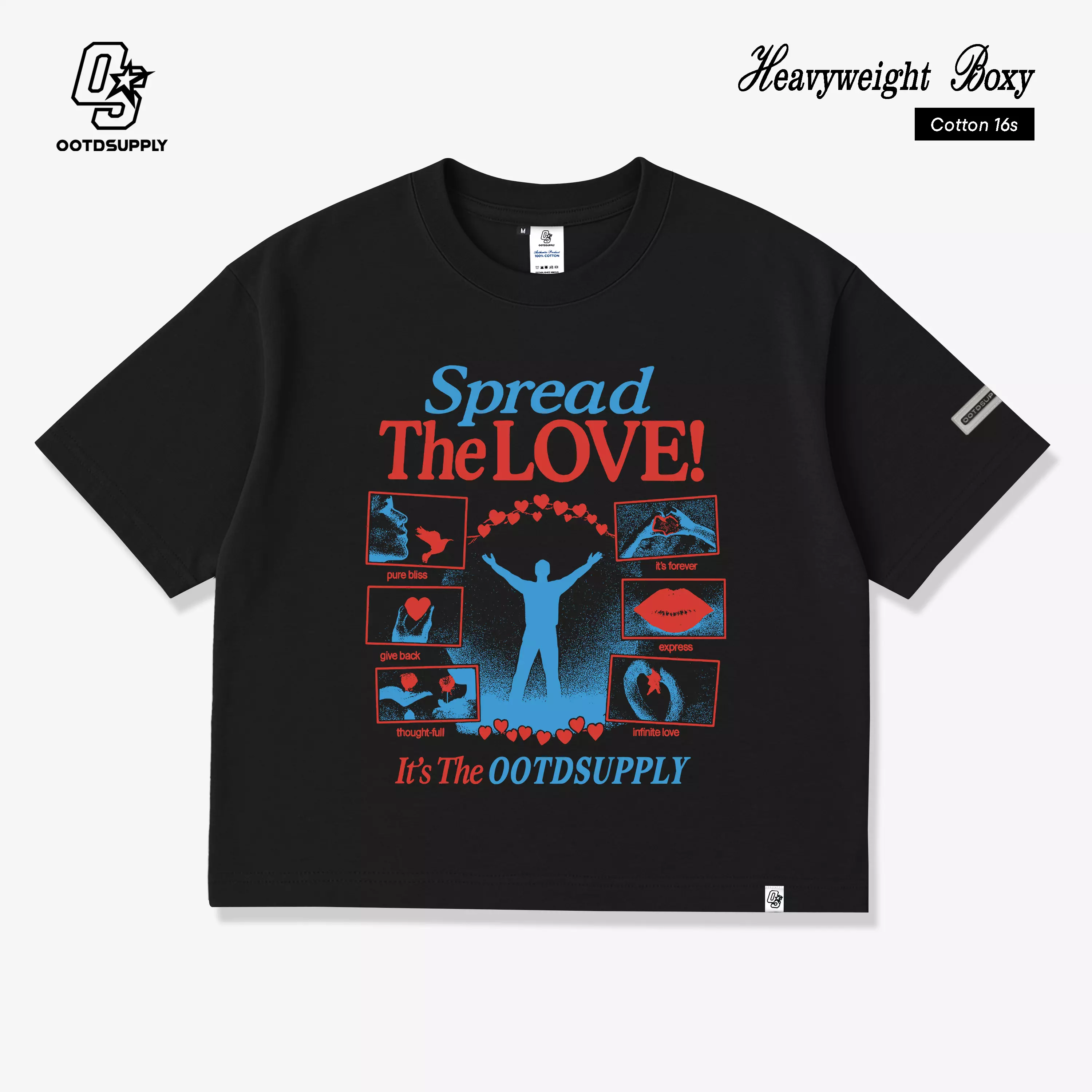 OOTDSUPPLY Heavyweight BoxyFit 16s Spread Love Black Tshirt Boxy I Kaos Boxy 16s I OVZ-BX16S-009