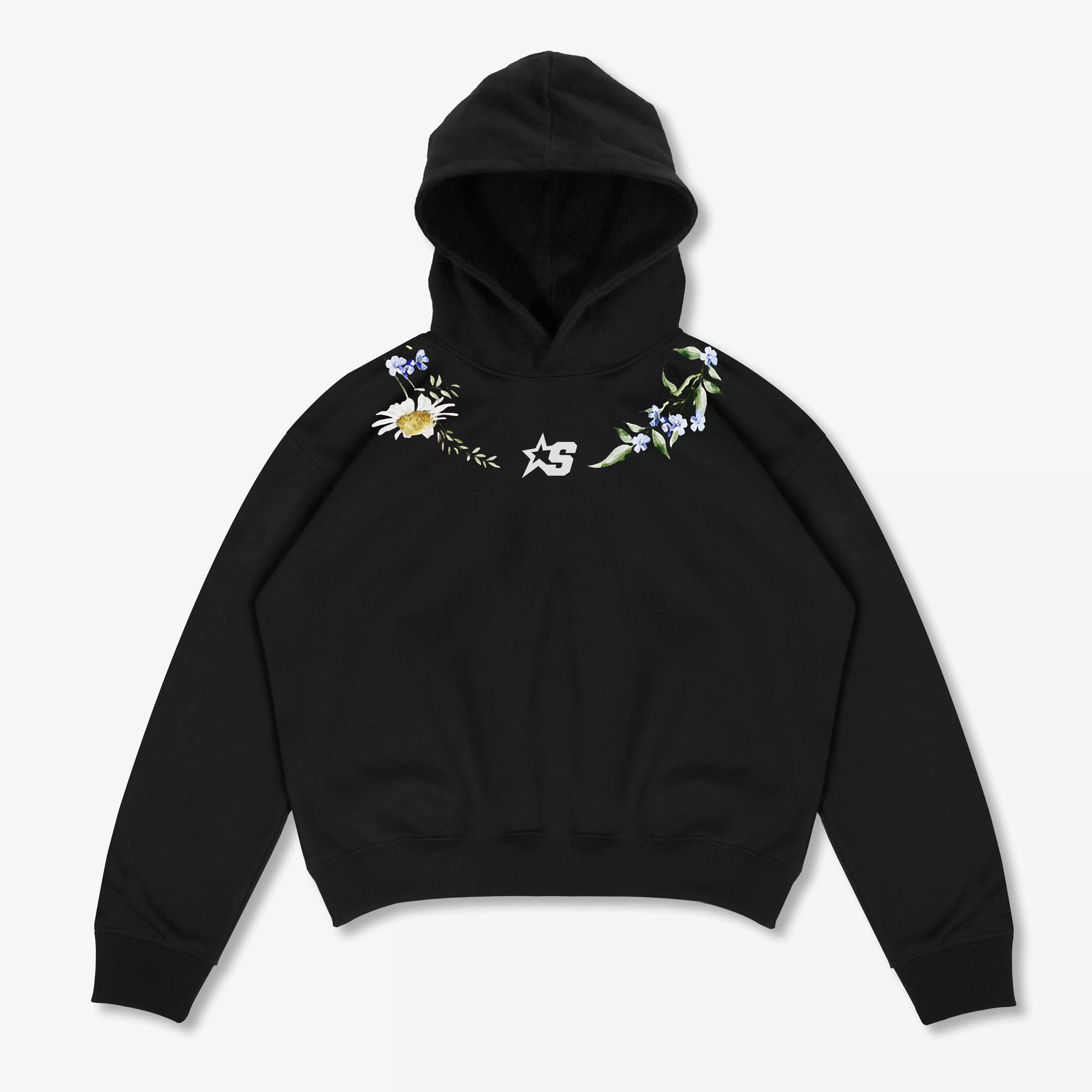 OOTDSUPPLY Hoodie Boxy Fit 375gsm Chamomiles Black l Hoodie Boxyfit Heavyweight | HDBX012
