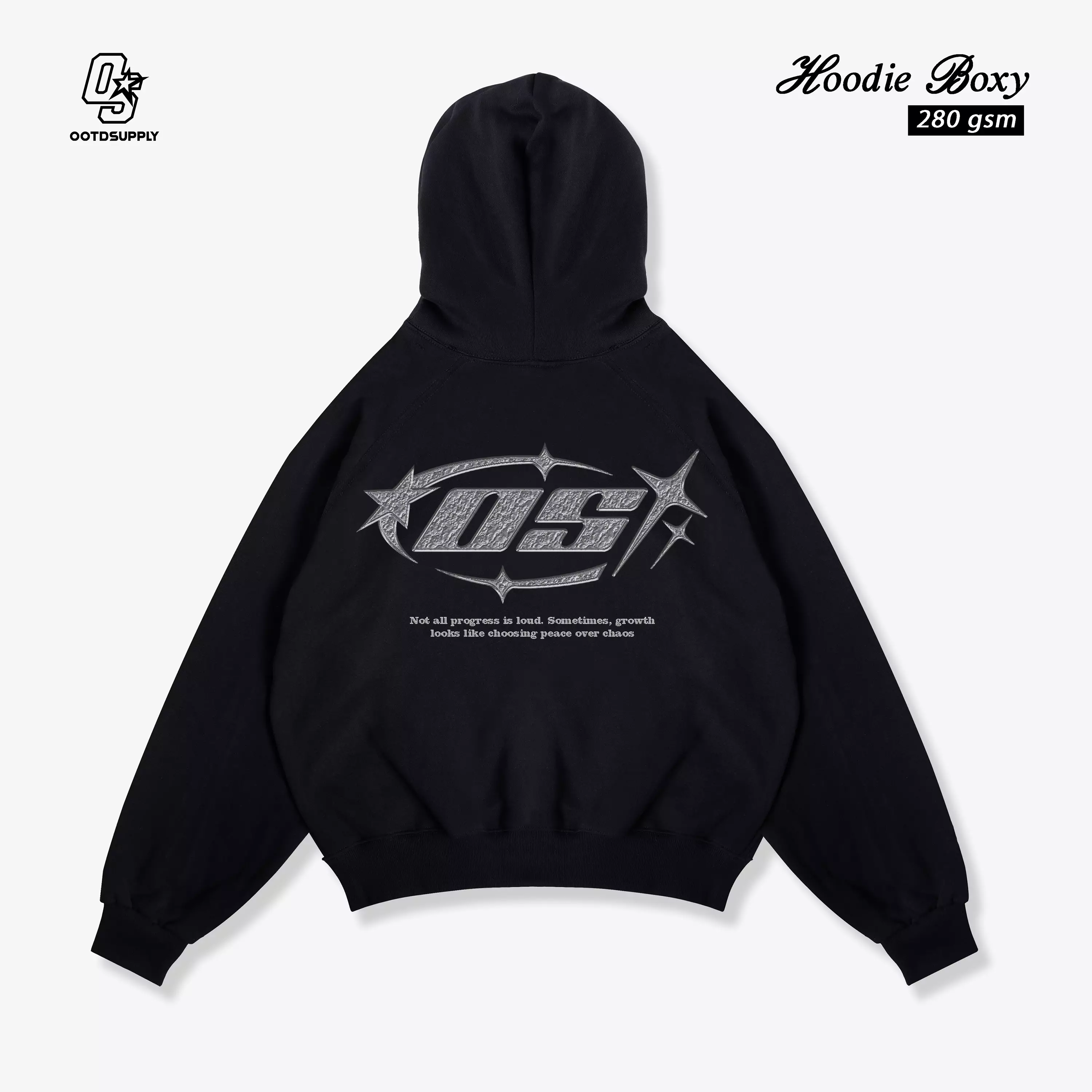 OOTDSUPPLY Hoodie Boxyfit Neovibe Black | Hoodie Boxy fit | HD-BX275-001