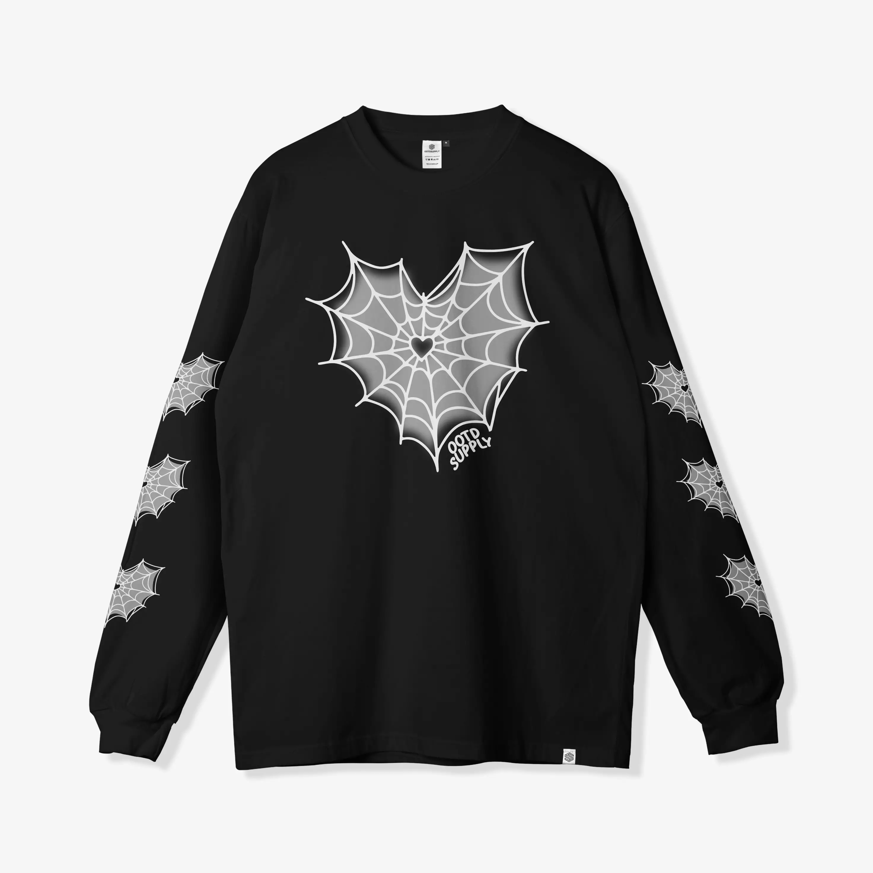 OOTDSUPPLY Longsleeve Webs Heart Black l Kaos Lengan Panjang Pria dan Wanita LS025