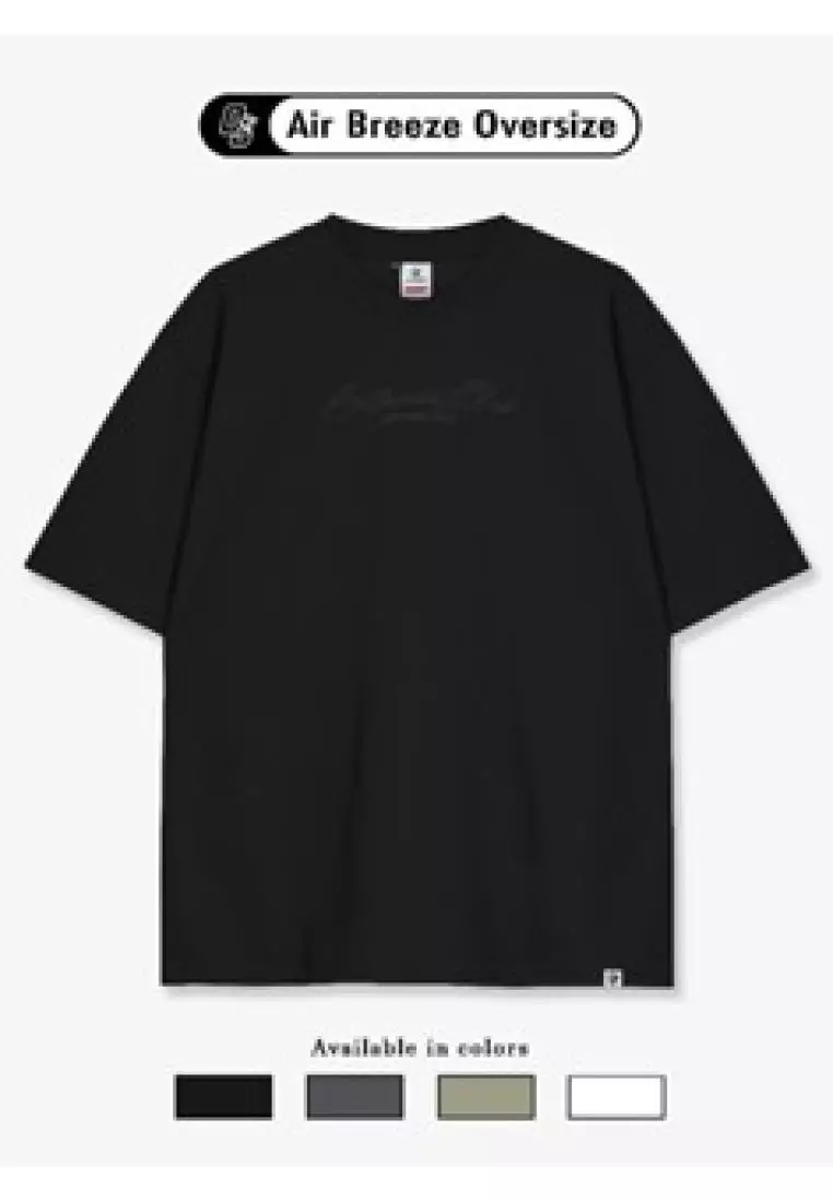 OOTDSUPPLY Oversize Air Breeze Enthusiast Embroidery Black | T-shirt Lightweight | Atasan Air Breeze | OVZDNBFT