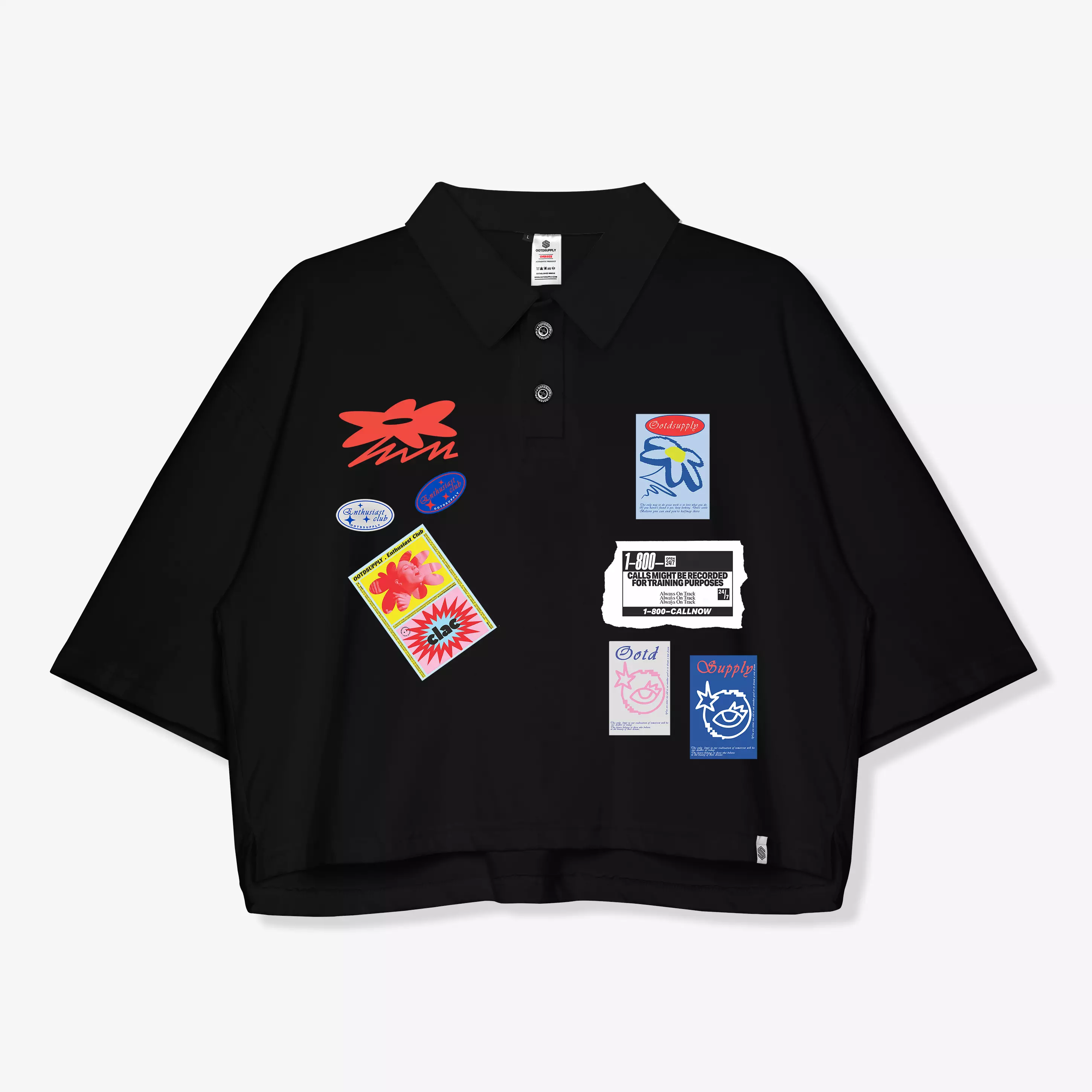 OOTDSUPPLY Oversize Polo Crop Shirt Discord Black & Dark Armyl Polo Crop Pria dan Wanita OVZ-CPS008