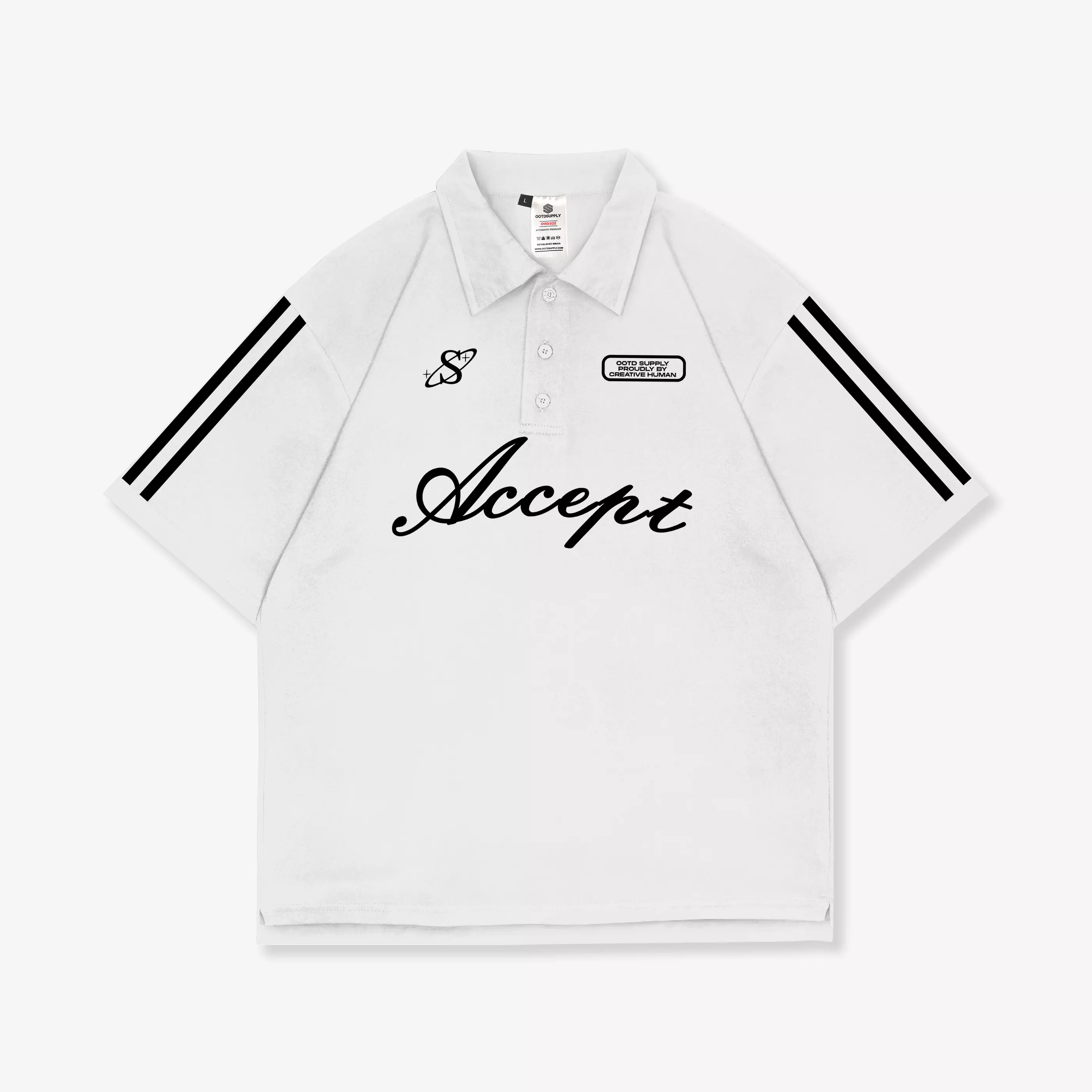 OOTDSUPPLY Oversize Polo Shirt Accept Line White & Black l Kaos Oversize Pria dan Wanita OVZ-PS003