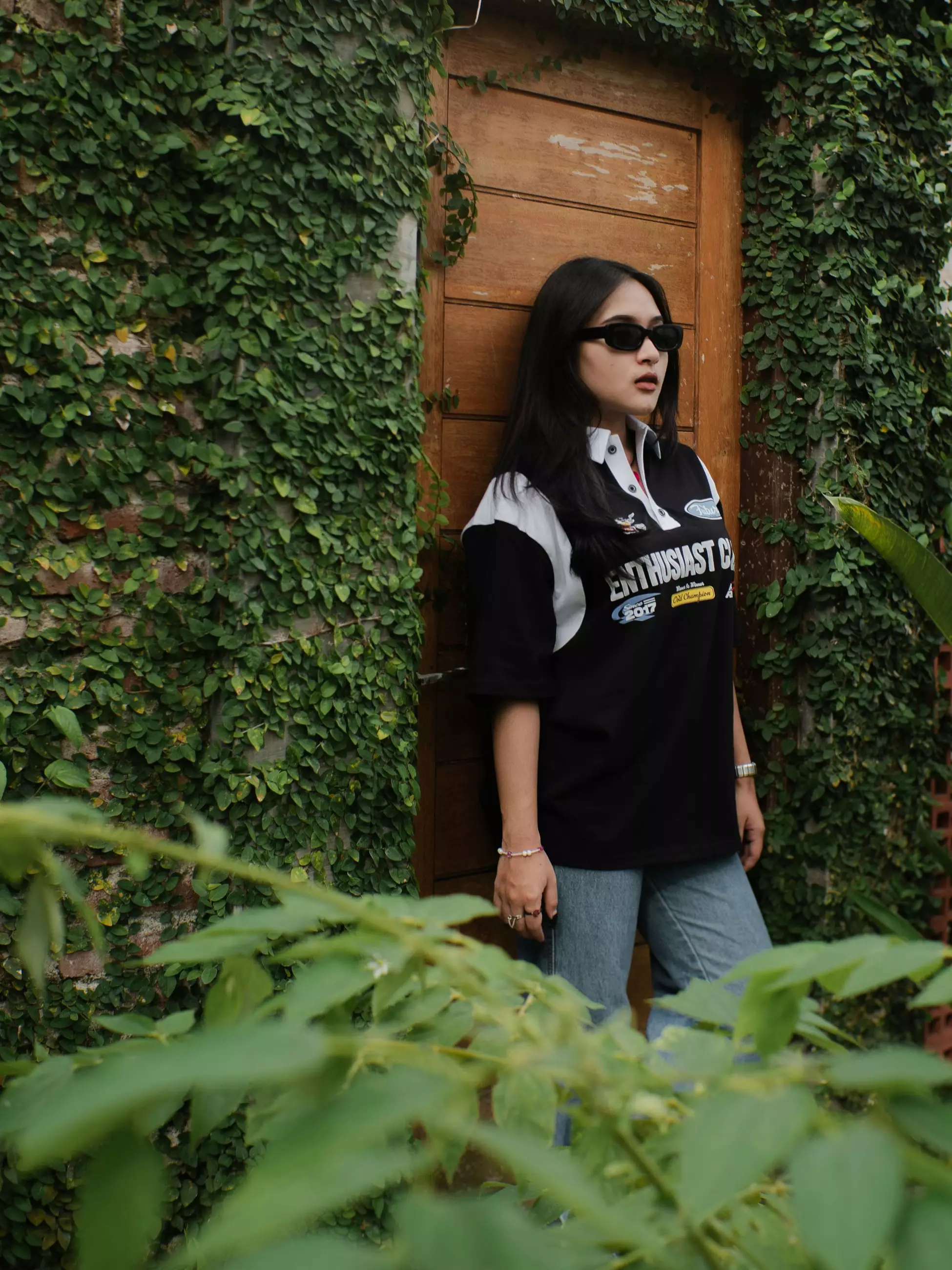 OOTDSUPPLY Oversize Rugby Polo Shirt OOTD Runner Combination | Kaos Polo Pria dan Wanita OVZ-PSR030