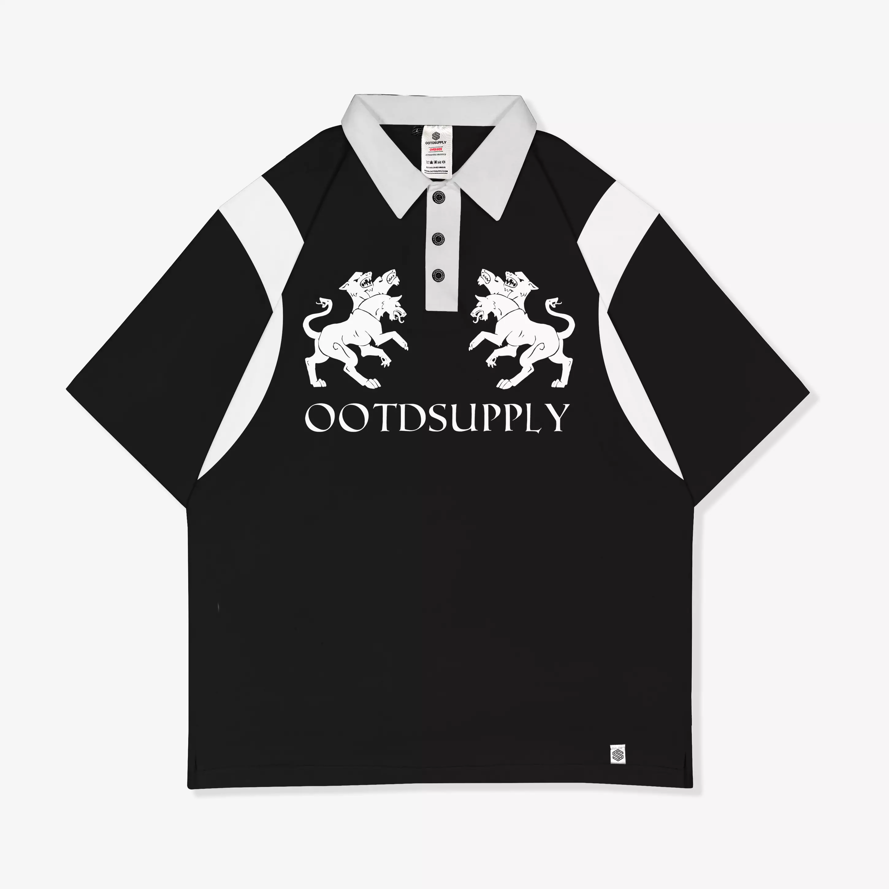 OOTDSUPPLY Oversize Rugby Polo Shirt Under Dog Combination | Kaos Polo Pria dan Wanita OVZ-PSR032