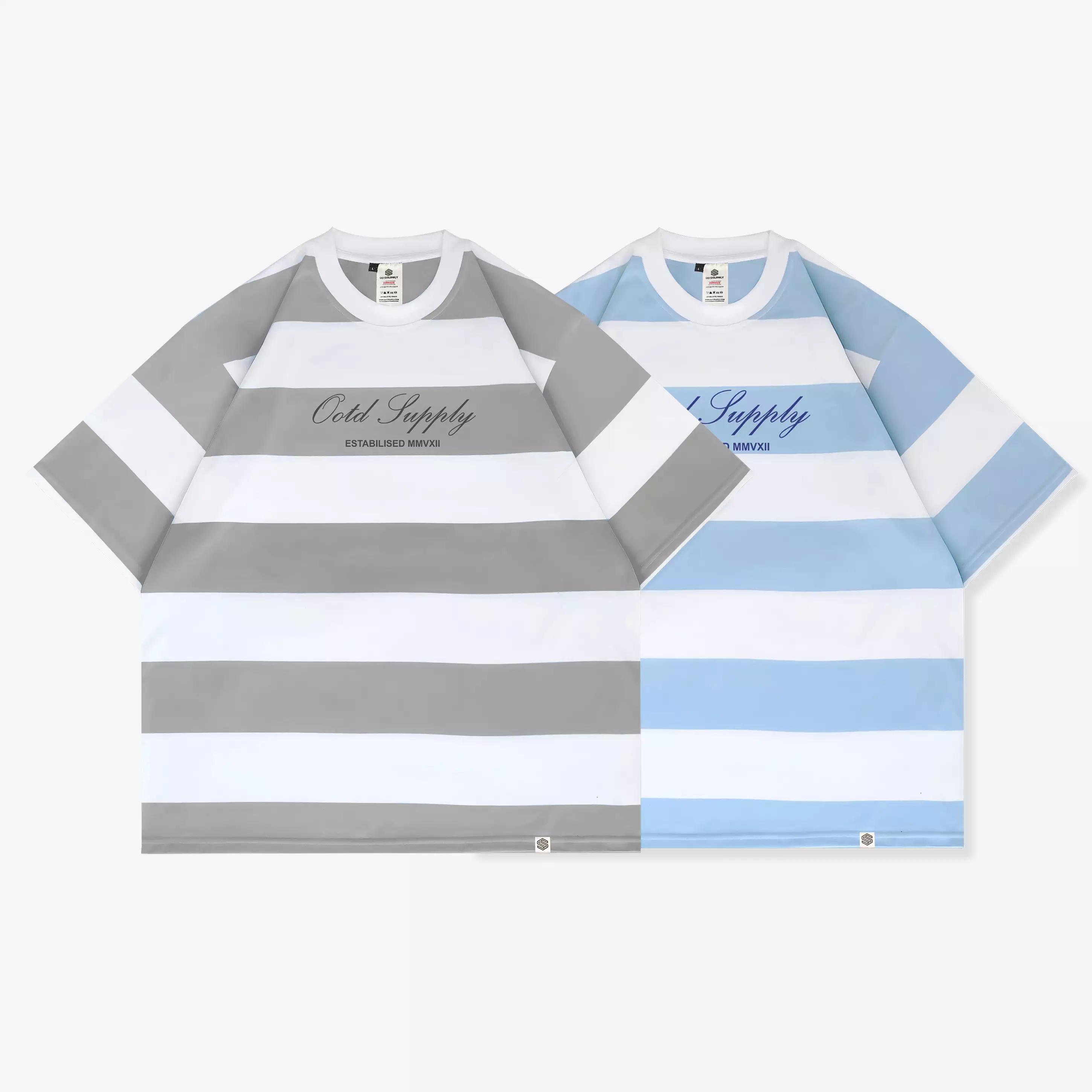 ootdsupplyOOTDSUPPLY Oversized Linear Baby Blue & Grey Stripe | Oversize Pria & Wanita OVZSTP003200000.00