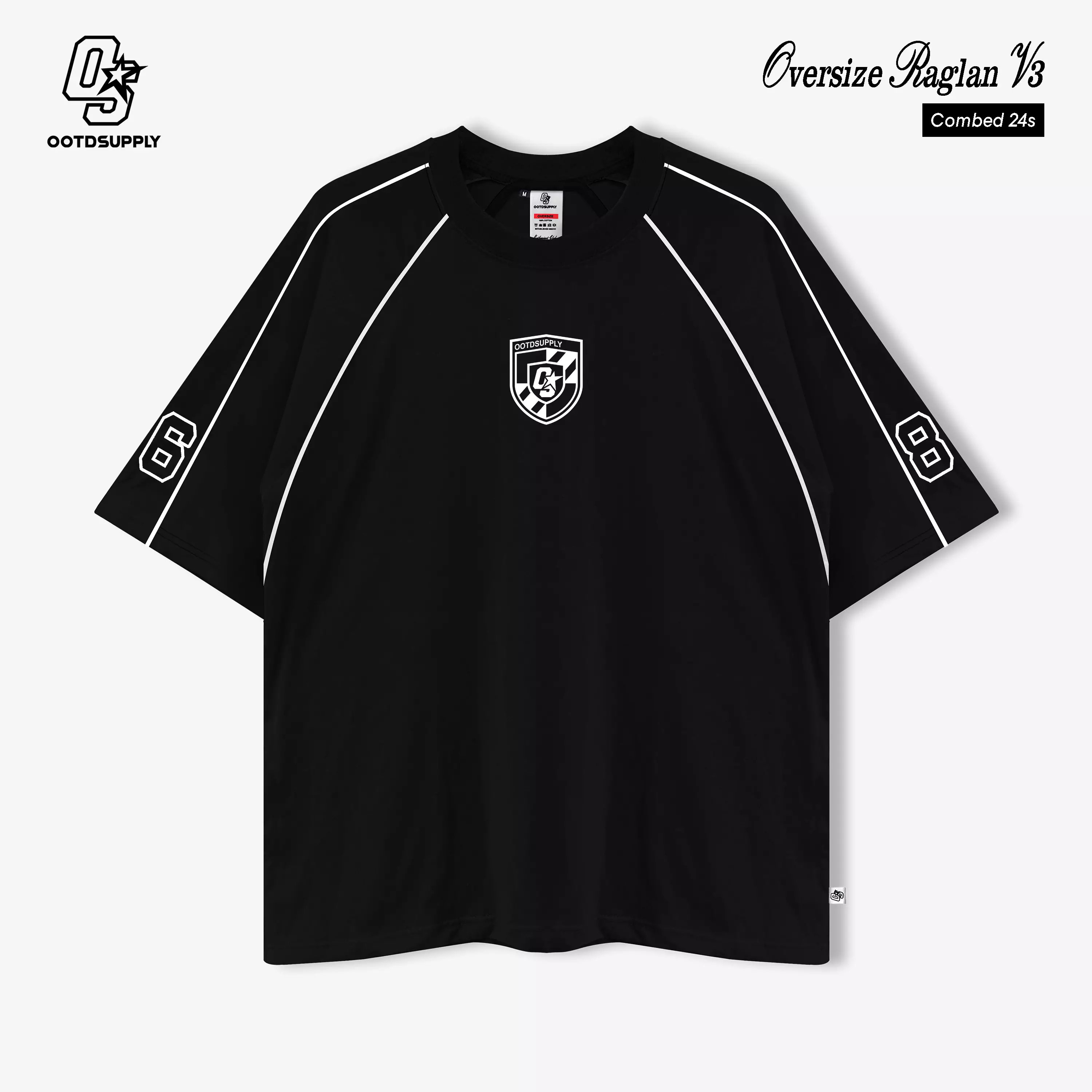 OOTDSUPPLY Oversized Raglan List V3 Sprint 86 Black & White | Oversize Pria & Wanita OVZRGLV3004