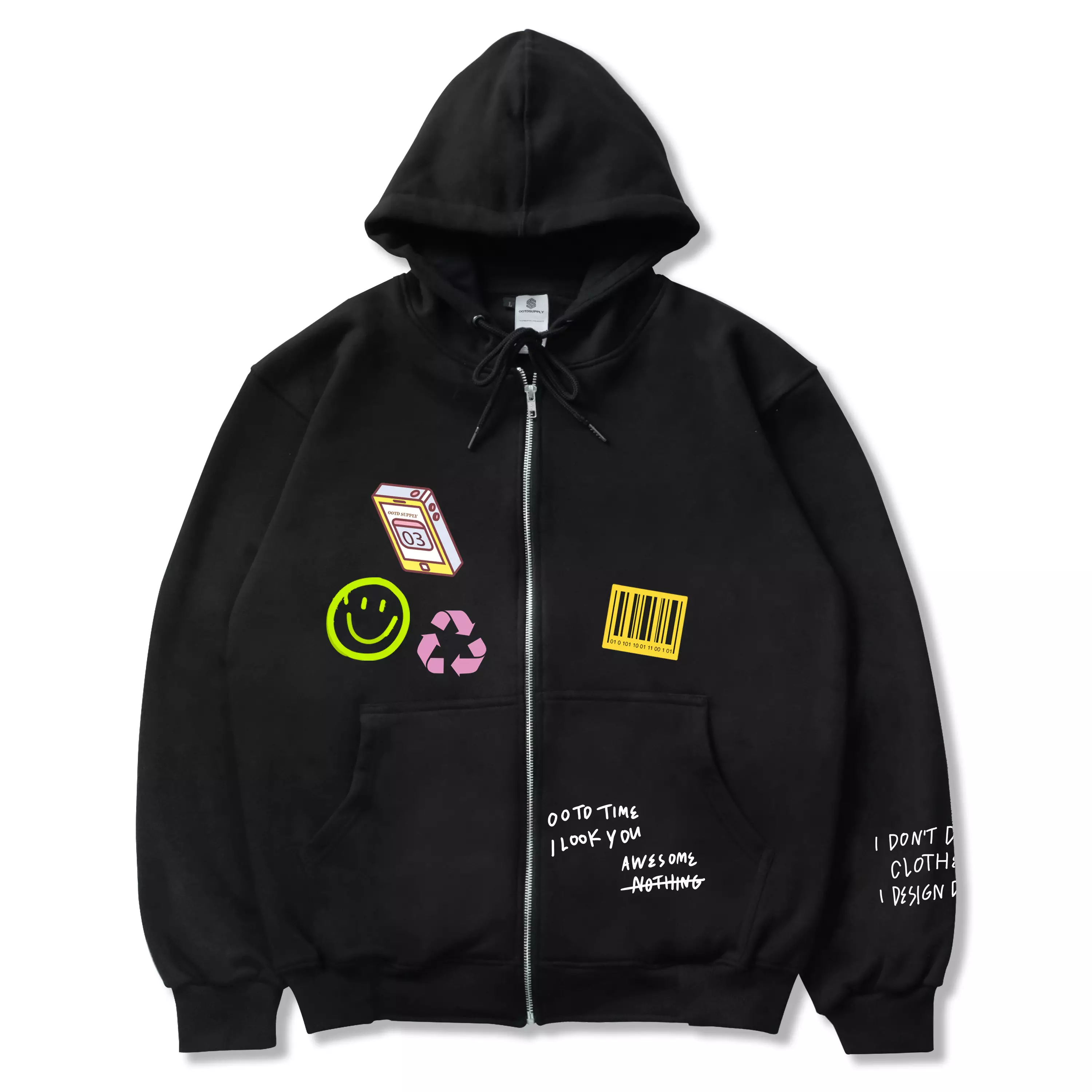 OOTDSUPPLY - Zipper Hoodie Aimless Black | Hoodie Pria & Wanita
