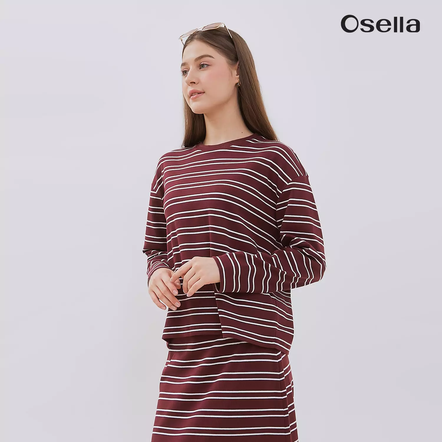 Osella Jeanne Stripe Rib-Kint Long Sleeve Top 2177500318 | Atasan Rajut Garis Garis Wanita Lengan Panjang