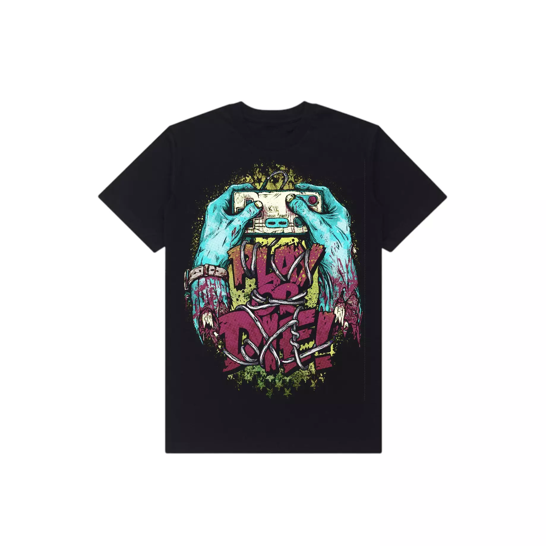 OsOssu T-Shirt Play Or Die Vintage Black Cotton Combed 24S