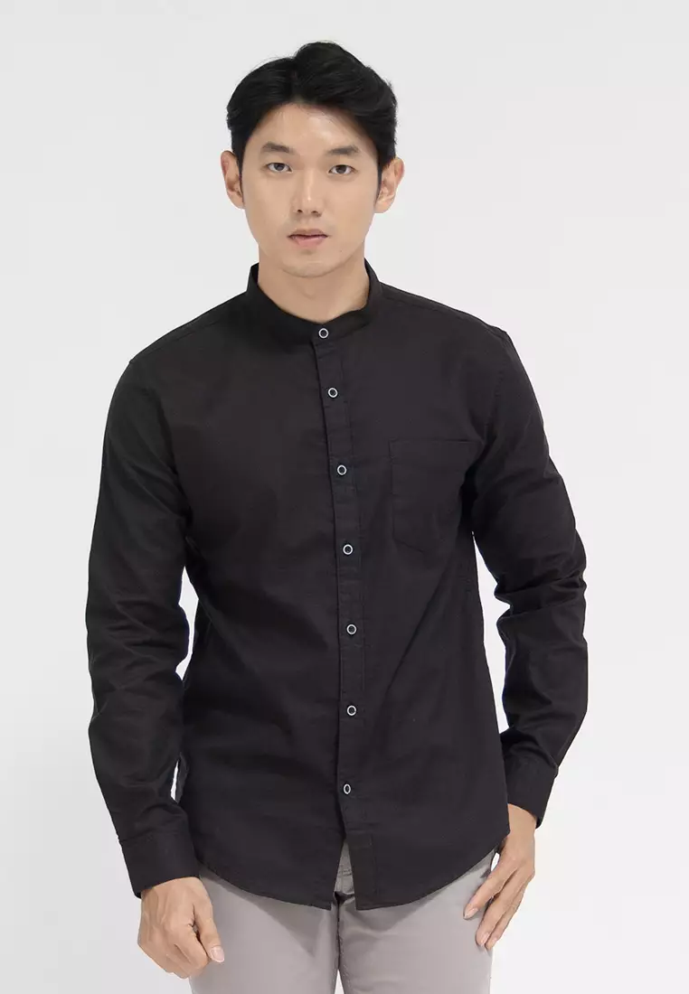 Kemeja collarless koko Slub hitam OXCON Black