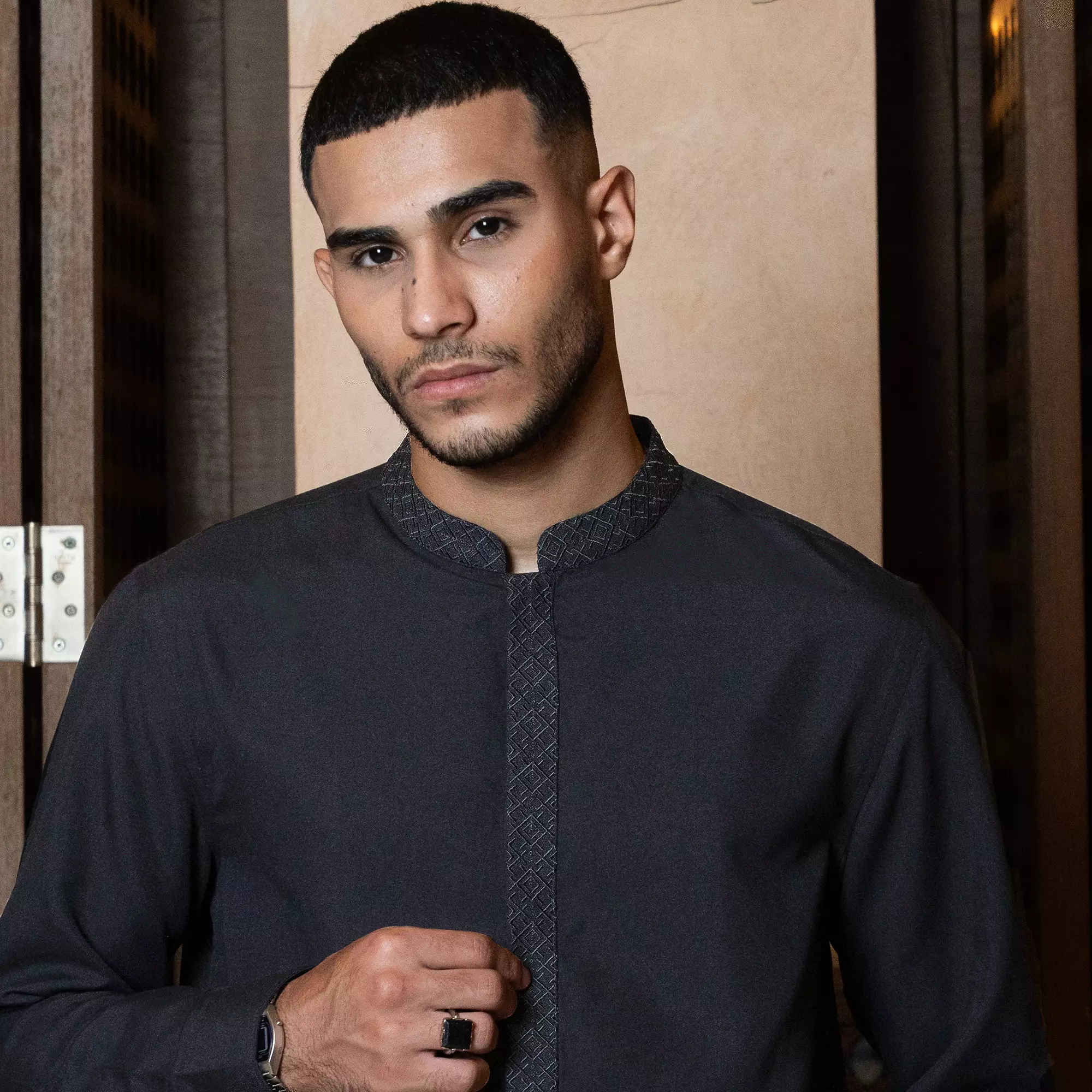 Kemeja Koko Bordir Azril Tangan Panjang Pria Muslim Lebaran Black