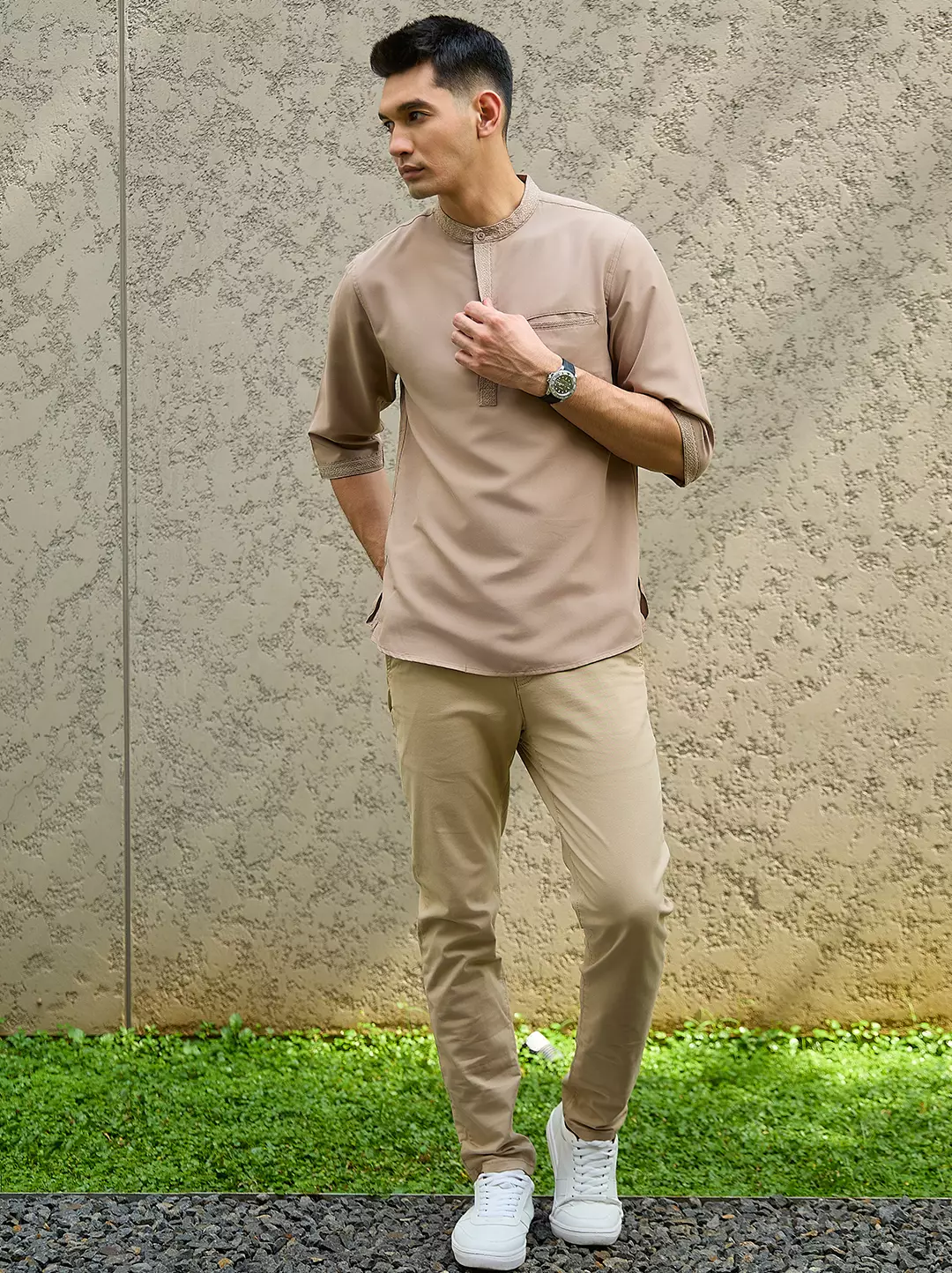 OXCON Kemeja koko Tangan 3/4 Bordir Hasbi Mocca