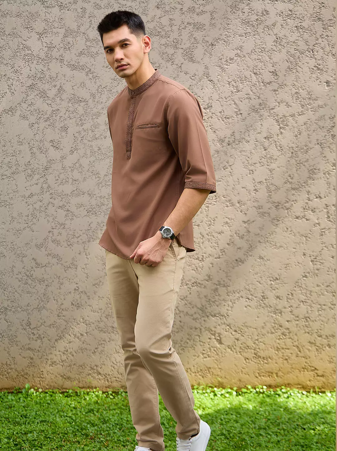 OXCON Kemeja koko Tangan 3/4 Bordir Hasbi Teracotta