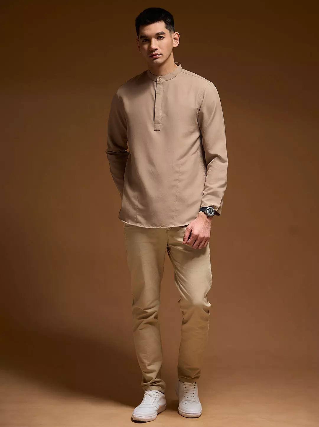 OXCON Kemeja koko Tangan Panjang Collarless Azfar Mocca