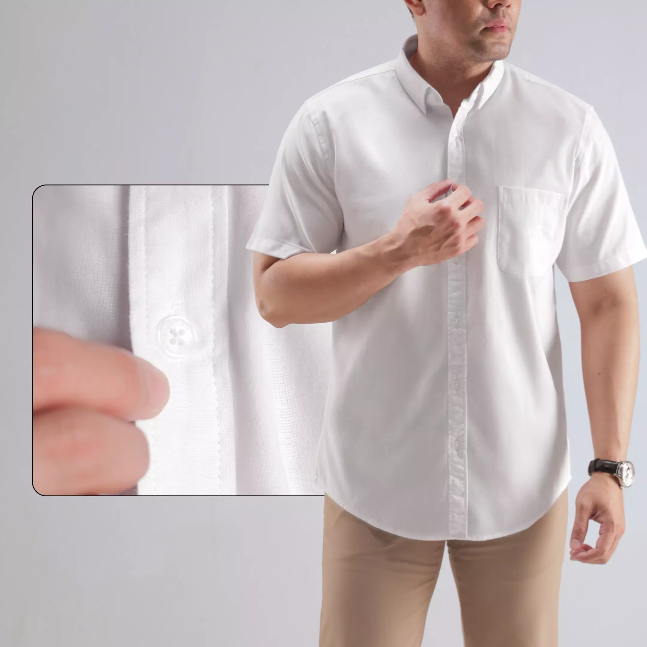OXCON Kemeja Oxford Pria Pendek - Metro Series White
