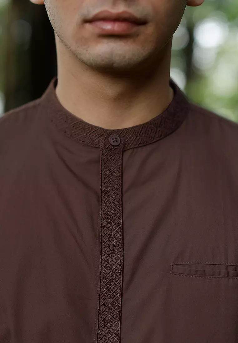 OXCON Kemeja Tangan Panjang koko bordir embrodiery collarless shirt Chesnut