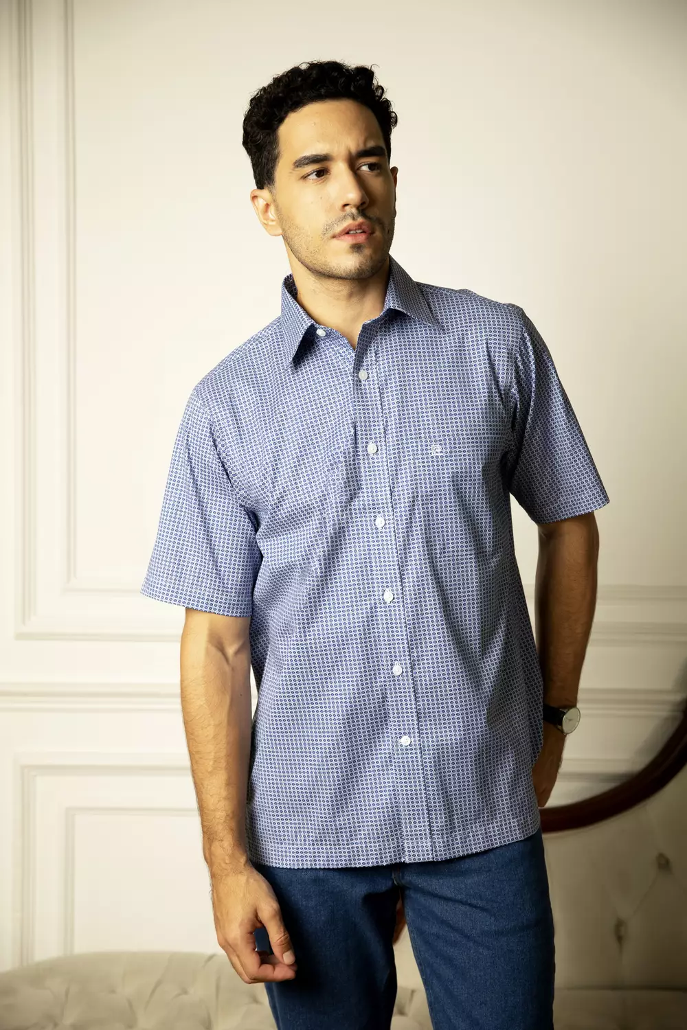 Kemeja Lengan Pendek Pierre Cardin TechnoShirt Orion Storm Blossom - Blue Cotton Smart Casual