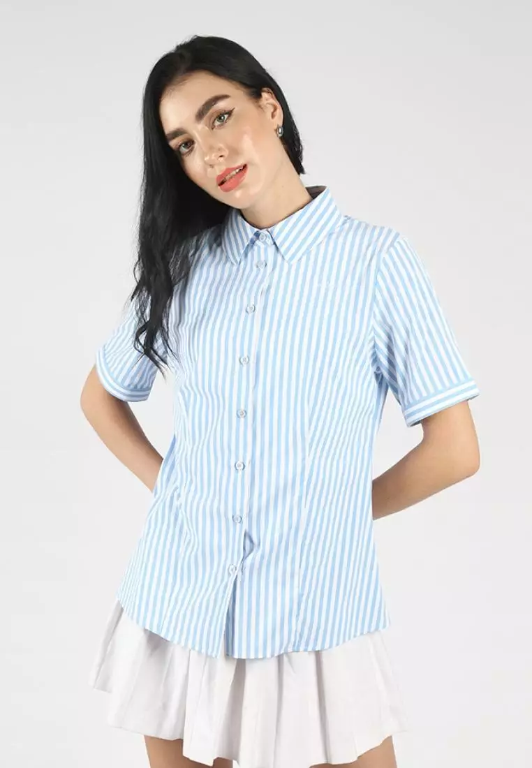 Kemeja Lengan Pendek Pierre Cardin Wanita Aleena Stripe Blue