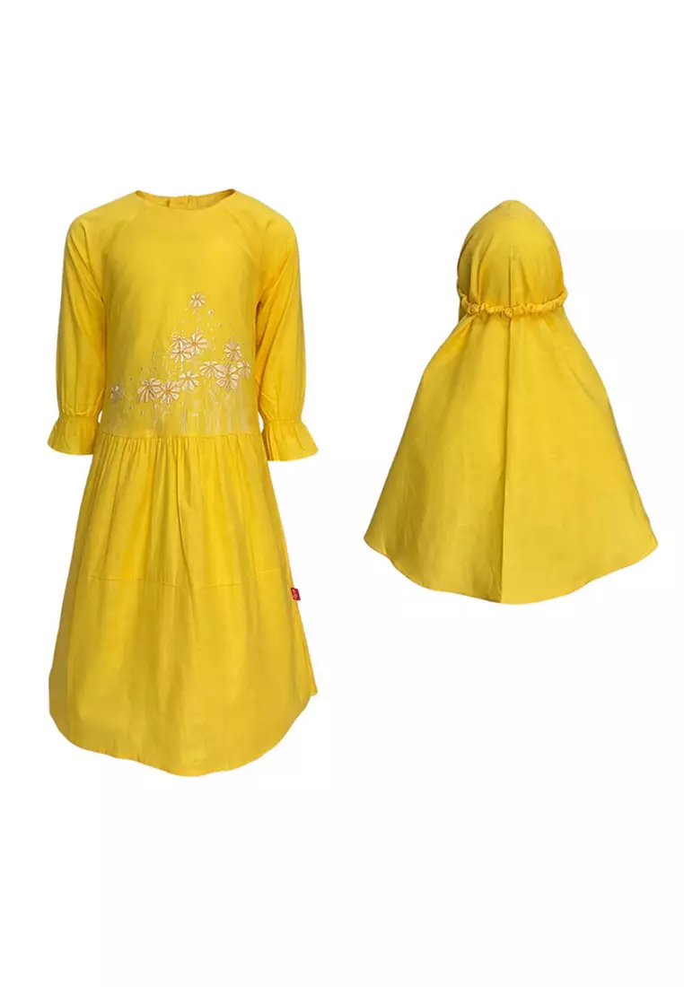 PinguPingu Gamis Anak Perempuan Bordir Bunga + Hijab Kuning 95400226629900.00150000.00