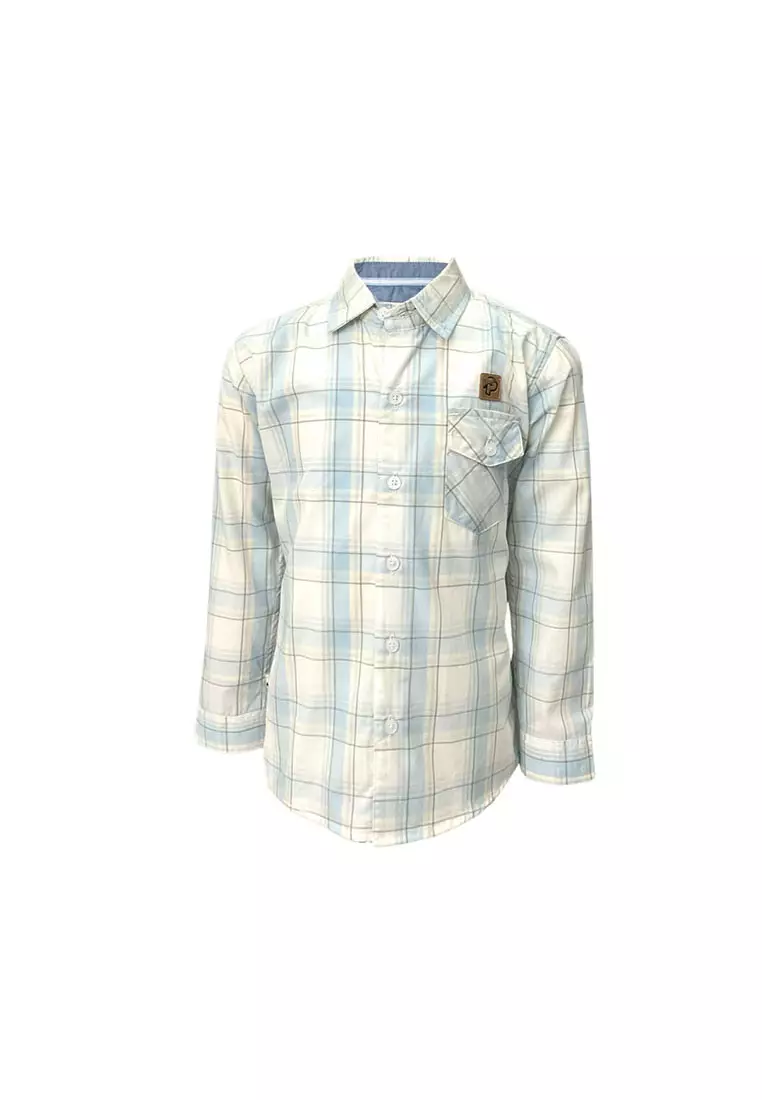 PinguPingu Kemeja Anak Laki Laki Kotak-Kotak Panjang Biru Muda 92100531409900.00122000.00