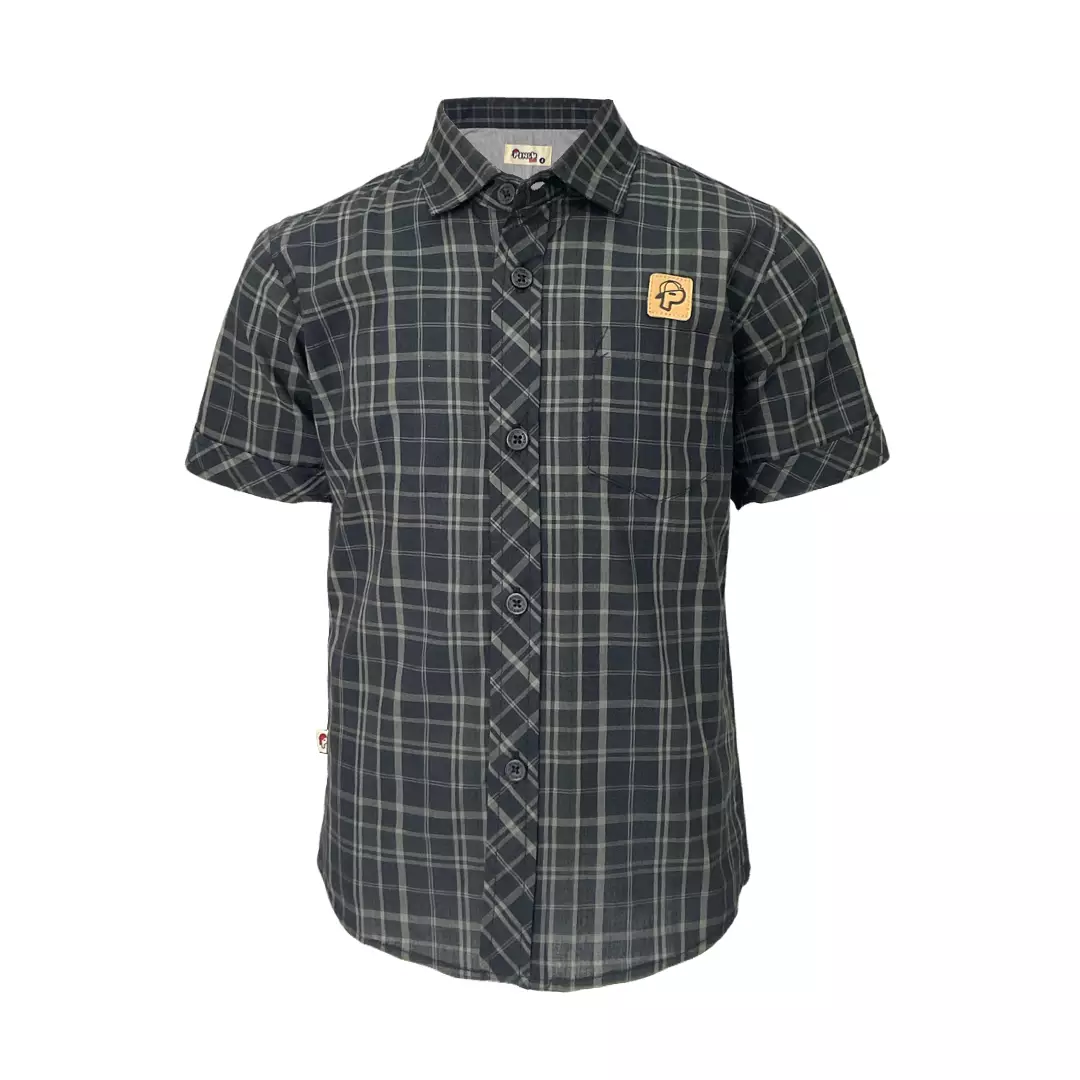PinguPingu Kemeja Anak Laki Laki Kotak-Kotak Pendek Hitam 92200731G359900.00125965.00