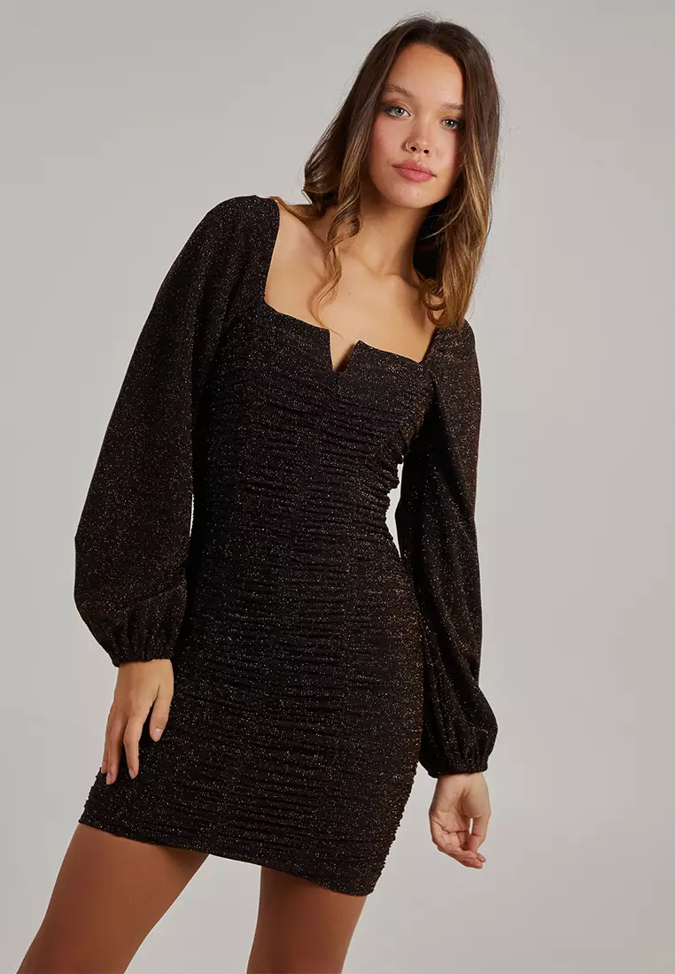 Pink VanillaPink Vanilla Bronze Glitter Notch Long Sleeve Dress592200.00