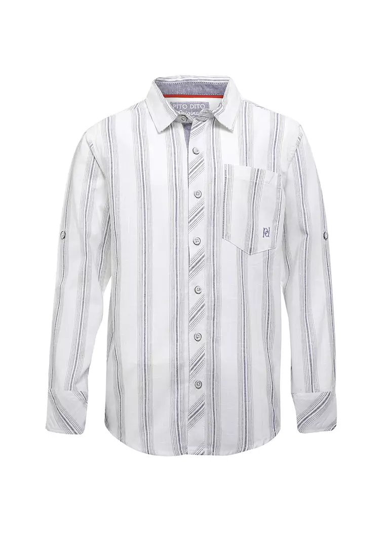 Pito Dito Boy Hartigan Kemeja Panjang Anak Putih Motif Salur - Size 4