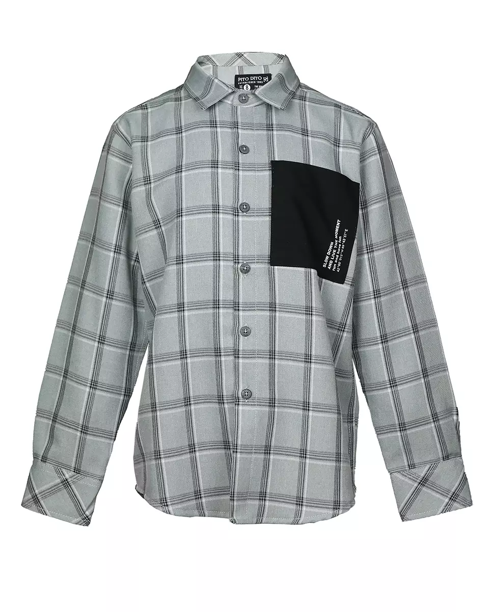Pito Dito Boy Landopus Kemeja Panjang Anak Abu Muda Motif Kotak - Size 4