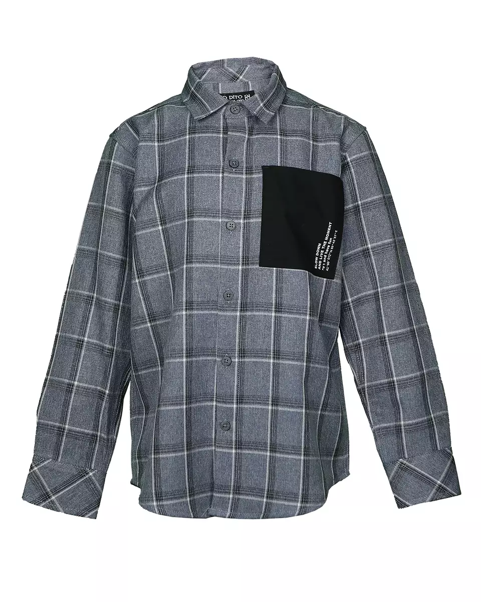 Pito Dito Boy Landopus Kemeja Panjang Anak Abu Tua Motif Kotak - Size 4