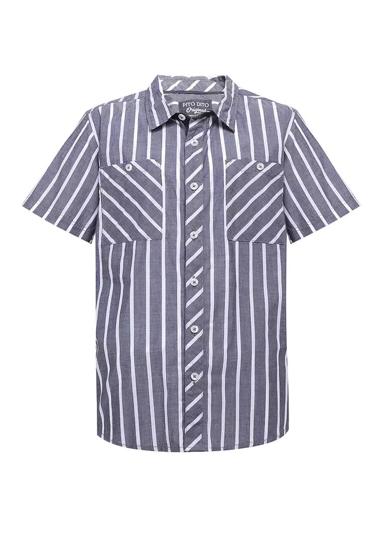 Pito Dito Boy Yondani Kemeja Pendek Anak Abu Tua Motif Garis - Size 14