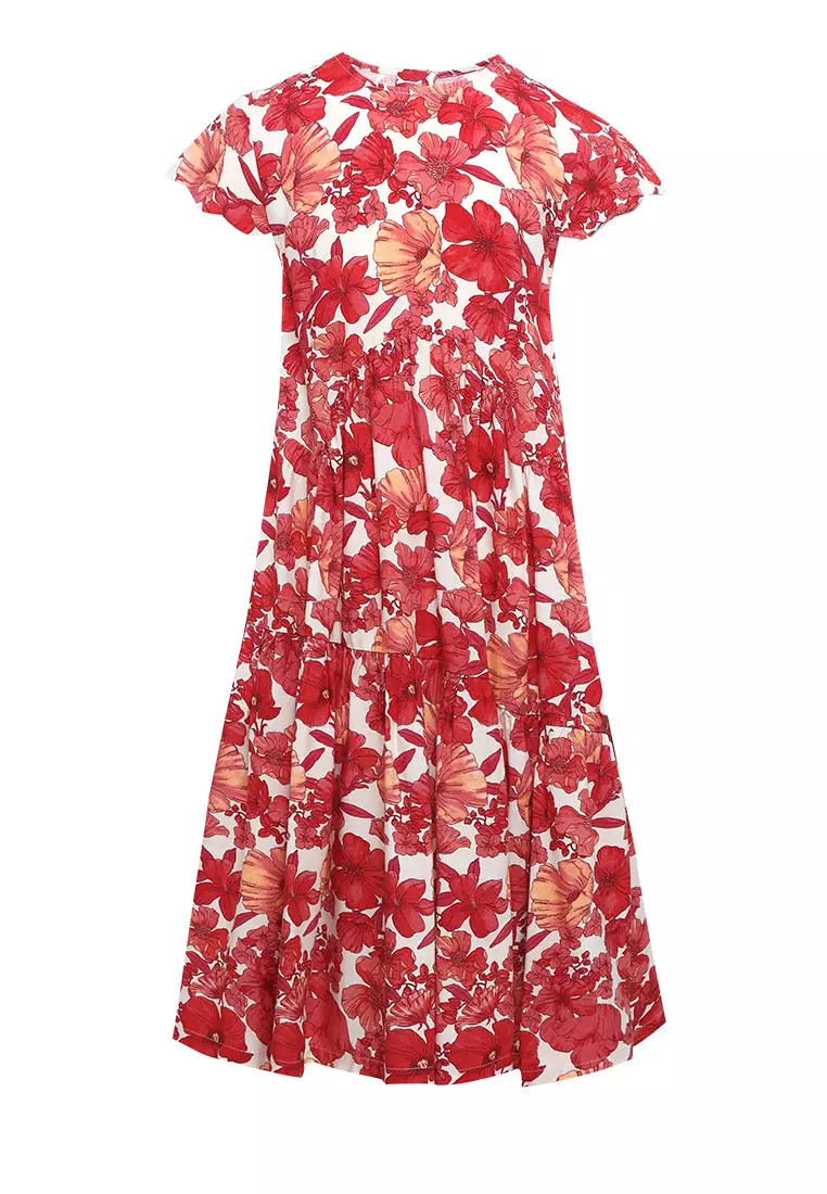 Pito Dito Girl Chiruru Dress Midi Anak Merah Motif Bunga