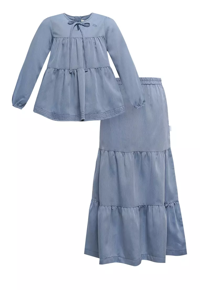 Pito Dito Girl Kashgar Setelan Panjang Anak Biru Denim - Size 4