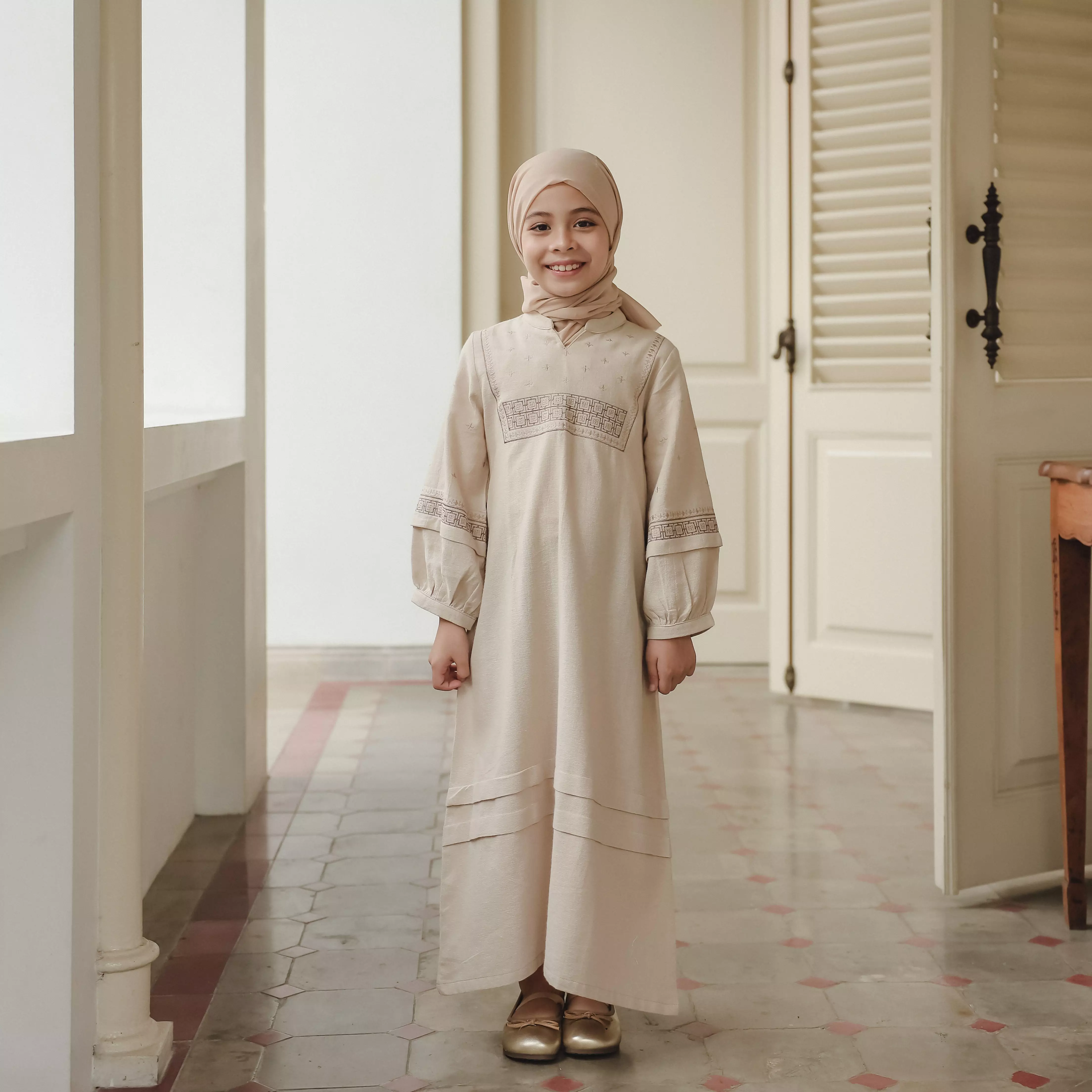 Pito Dito Girl Rafsan Gamis Dress Anak Coklat Muda - Size 14