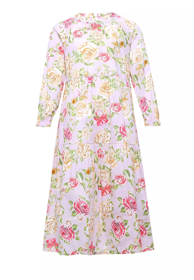 Pito Dito Girl Zaza Dress Panjang Anak Pink Motif Bunga