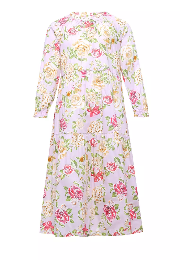 Pito Dito Girl Zaza Dress Panjang Anak Pink Motif Bunga - Size 4