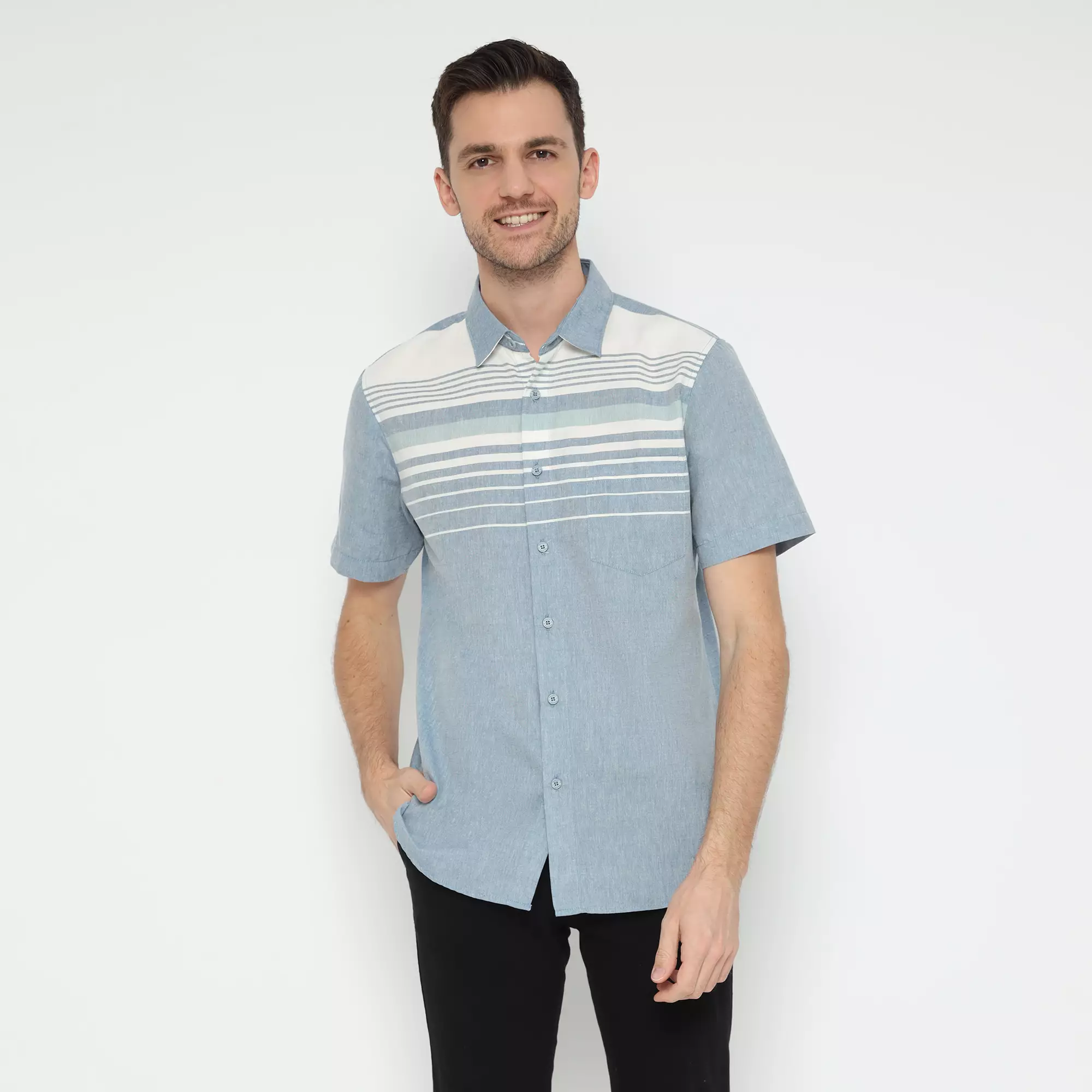 Platini(LAST CALL) Platini Kemeja Salur Horizontal Pria Lengan Pendek Light Blue 73484519000.0099000.00