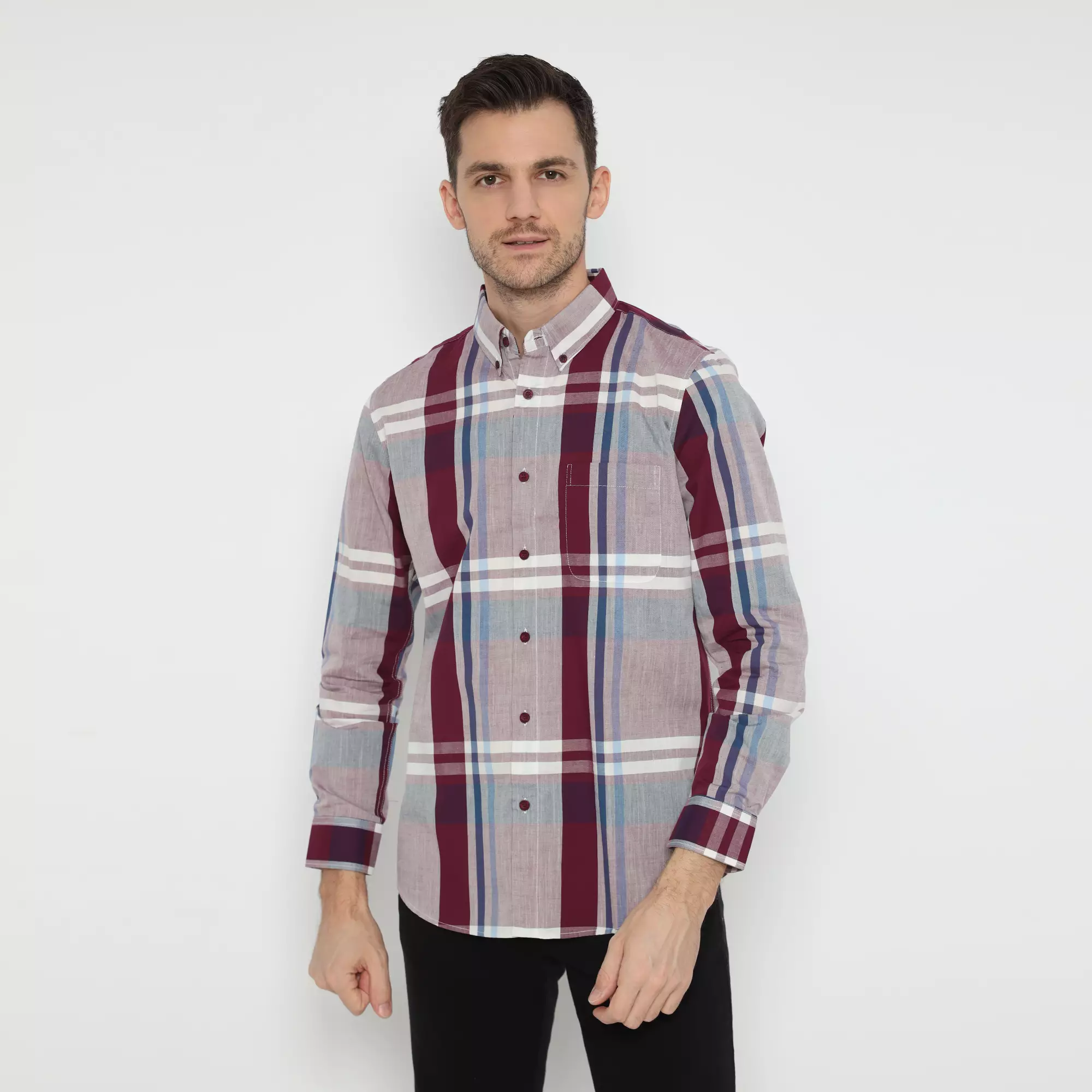 PlatiniPlatini Baju Kemeja Pria Lengan Panjang Kotak-Kotak Katun Maroon 76481579000.00179000.00