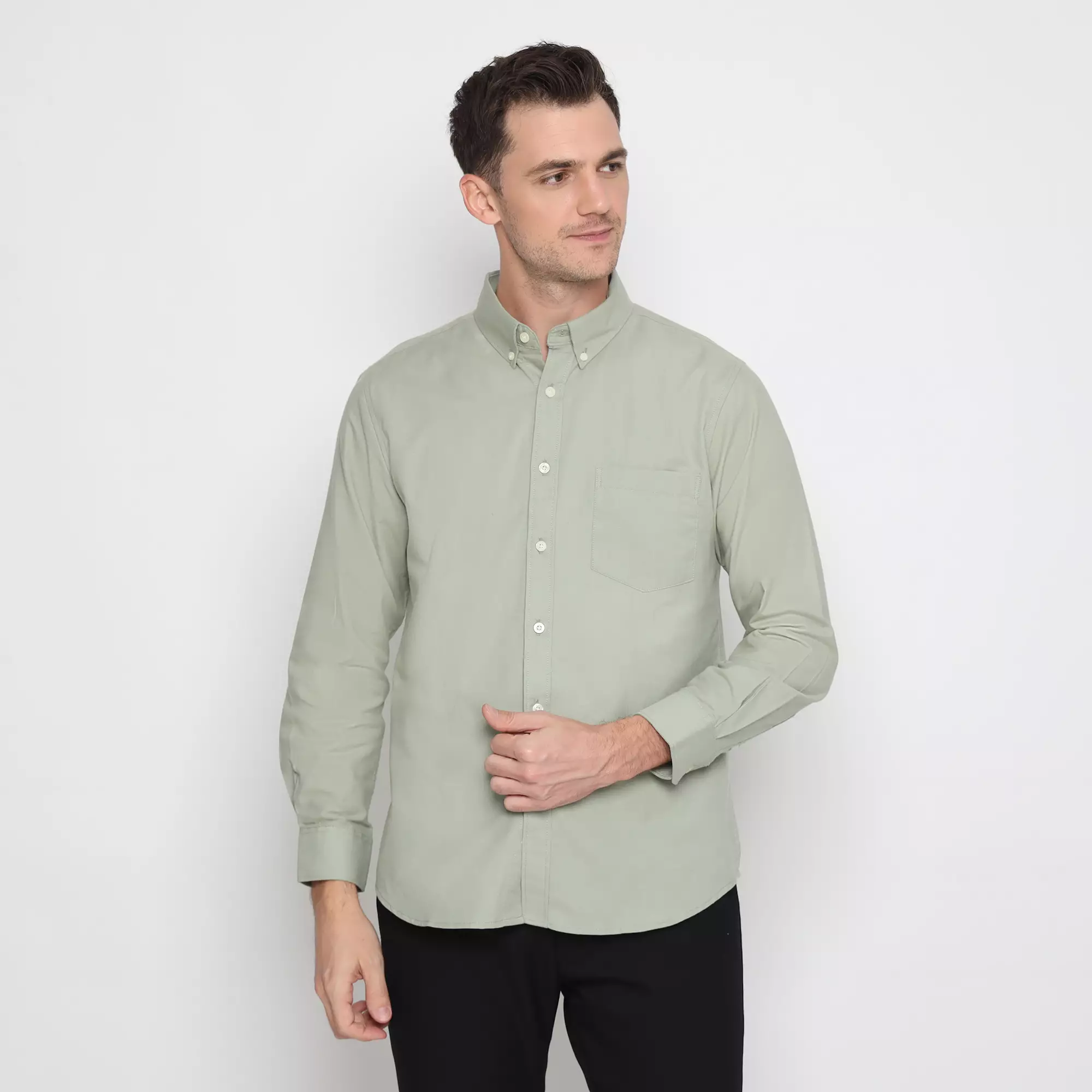 Platini Baju Kemeja Pria Lengan Panjang Polos Katun Oxford Hijau Sage 66251
