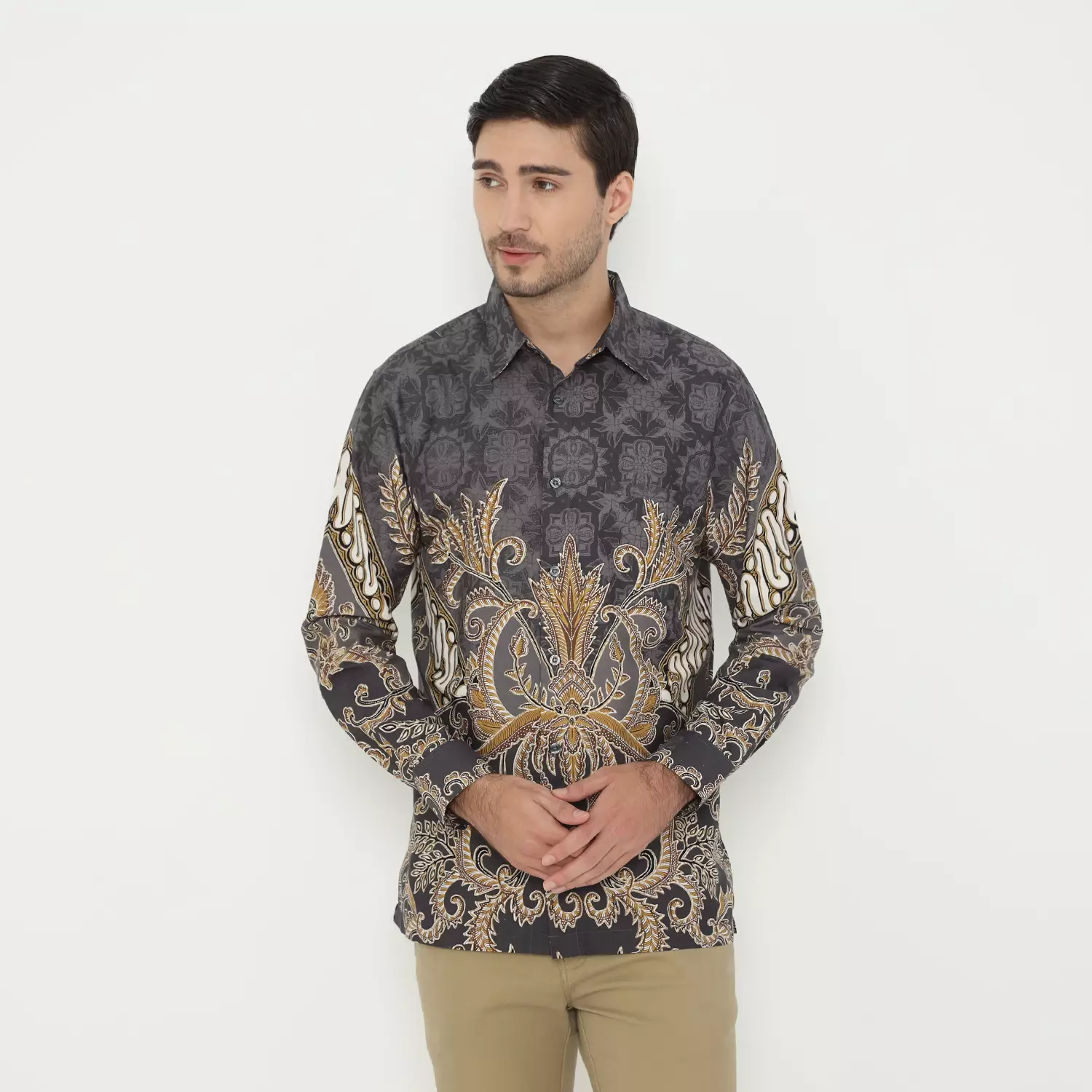 Platini Kemeja Batik Pria Lengan Panjang Katun Grey 36054.46