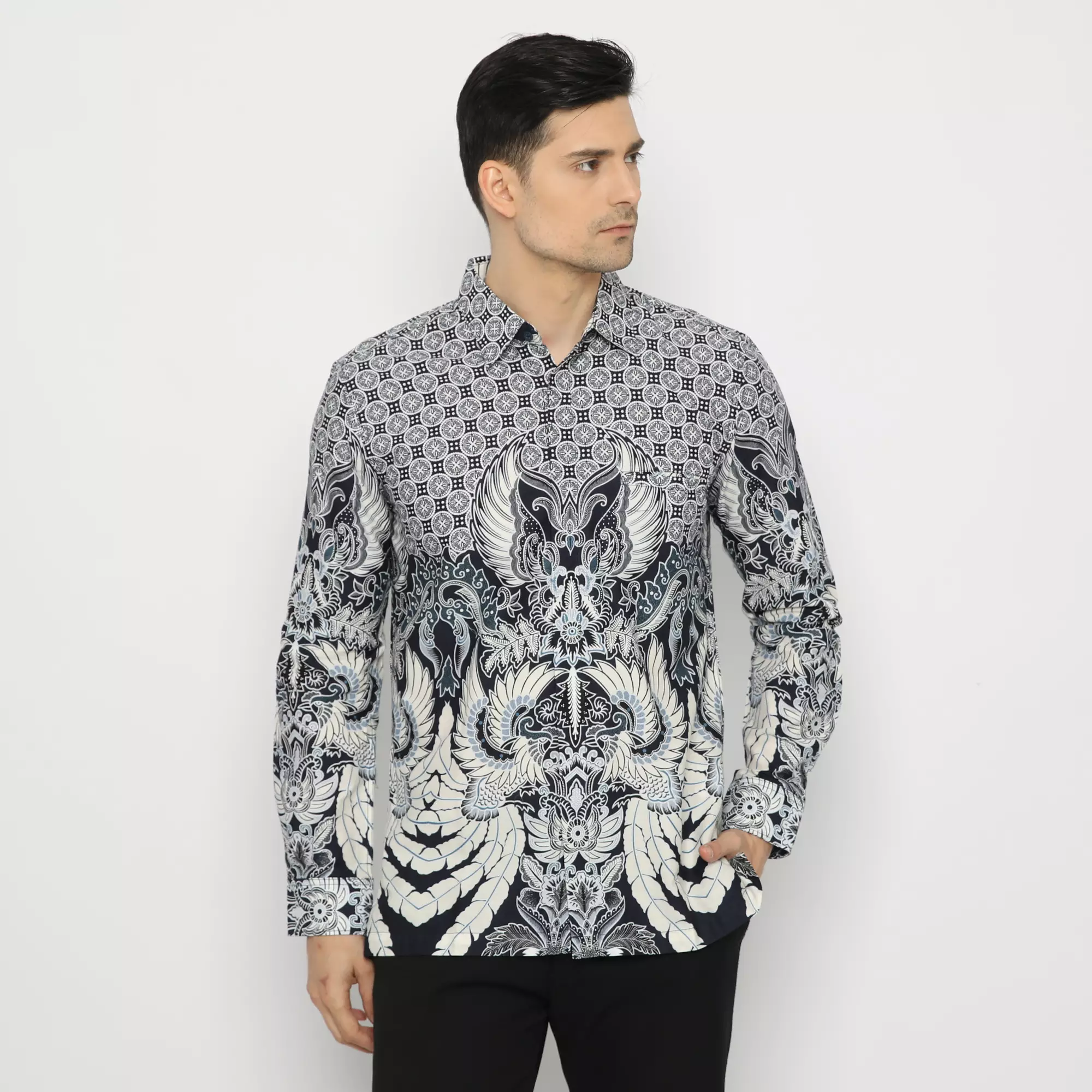 Platini Kemeja Batik Pria Lengan Panjang Katun Navy Abu 36026