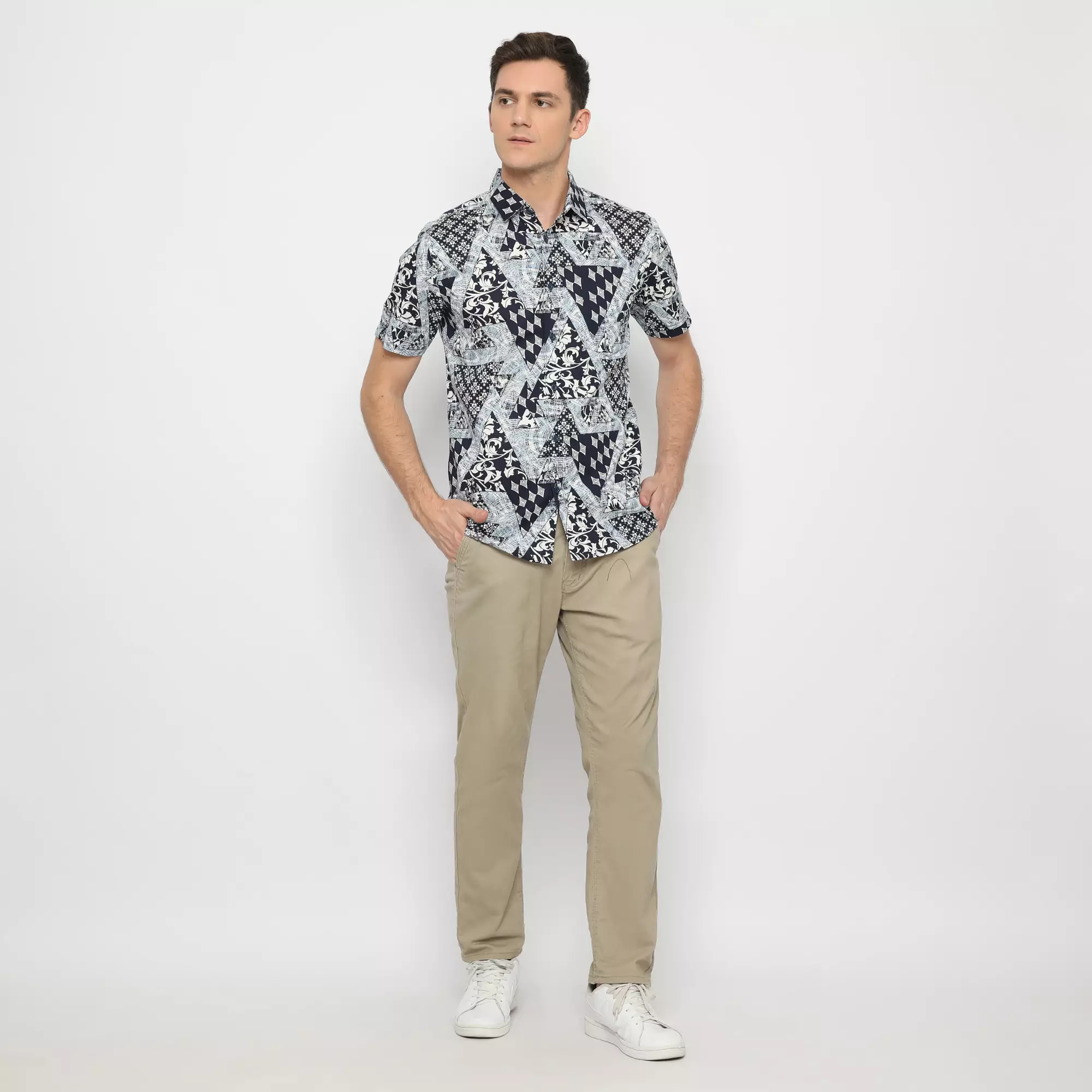 Platini Kemeja Batik Pria Lengan Pendek Katun Navy Biru 73171
