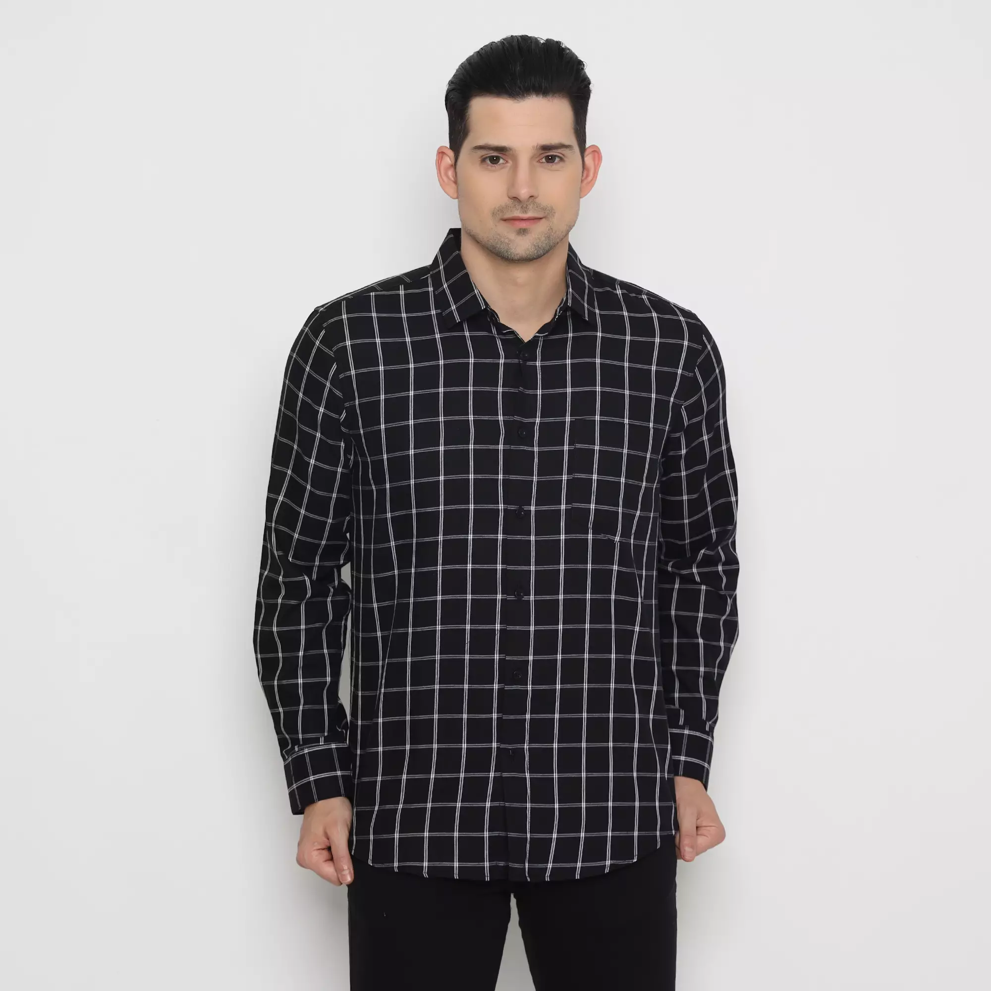 Platini Kemeja Flanel Pria Lengan Panjang Hitam 76444