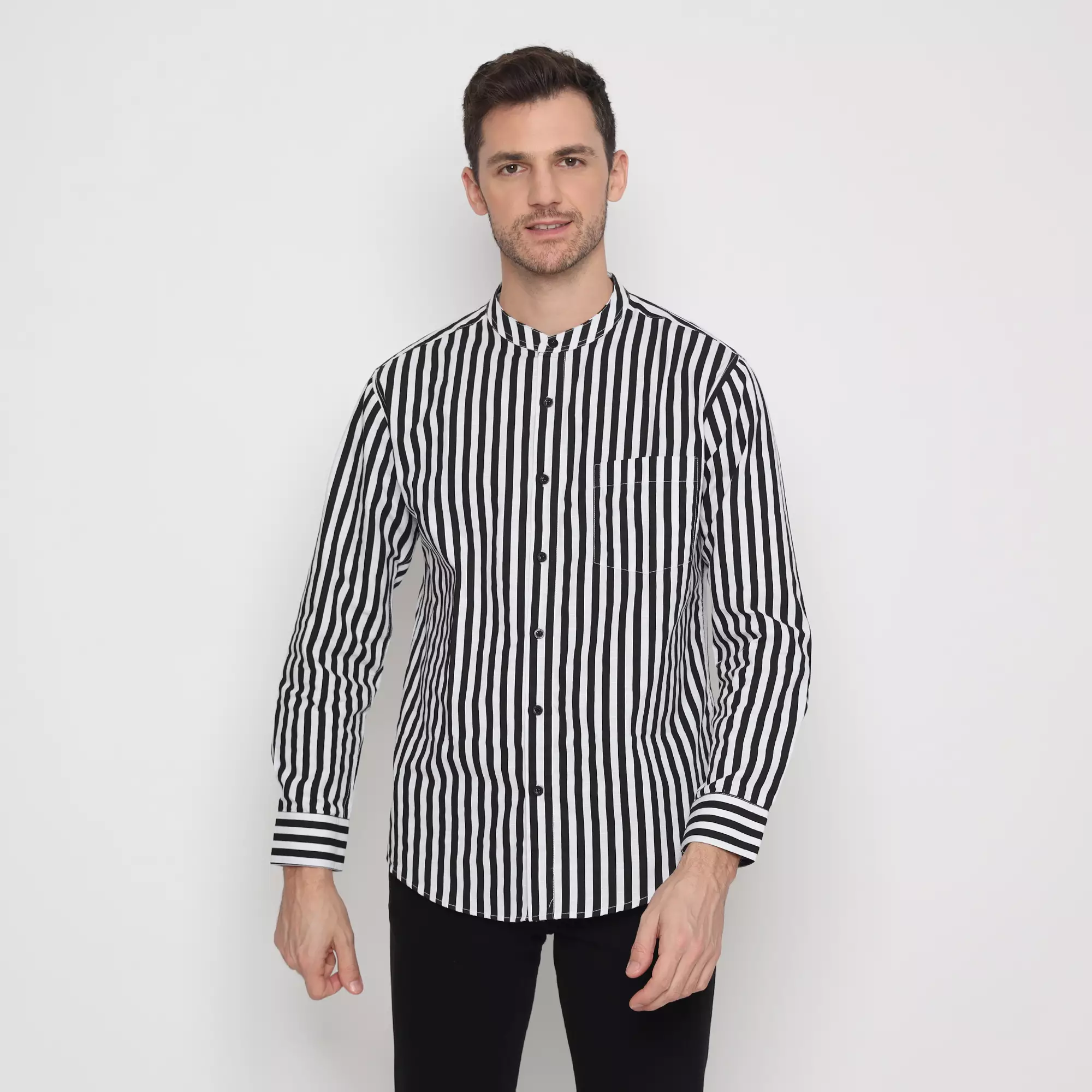 Platini Kemeja Koko Pria Lengan Panjang Katun Hitam Putih 961257