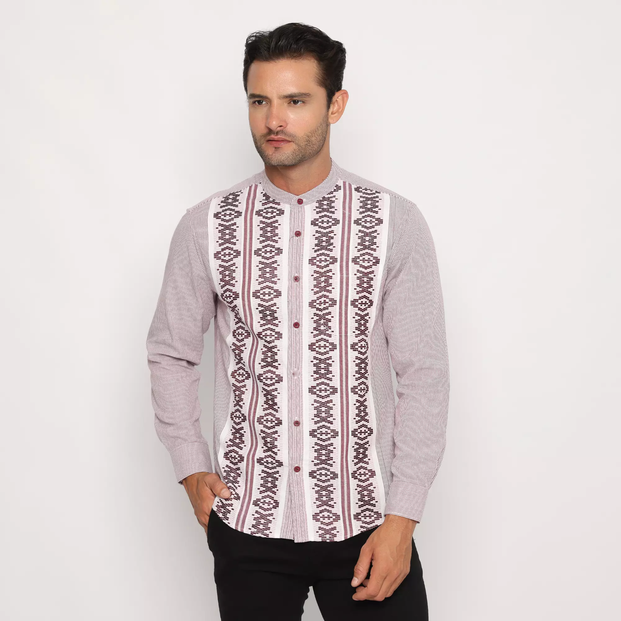 Platini Kemeja Koko Pria Lengan Panjang Katun Maroon 961165