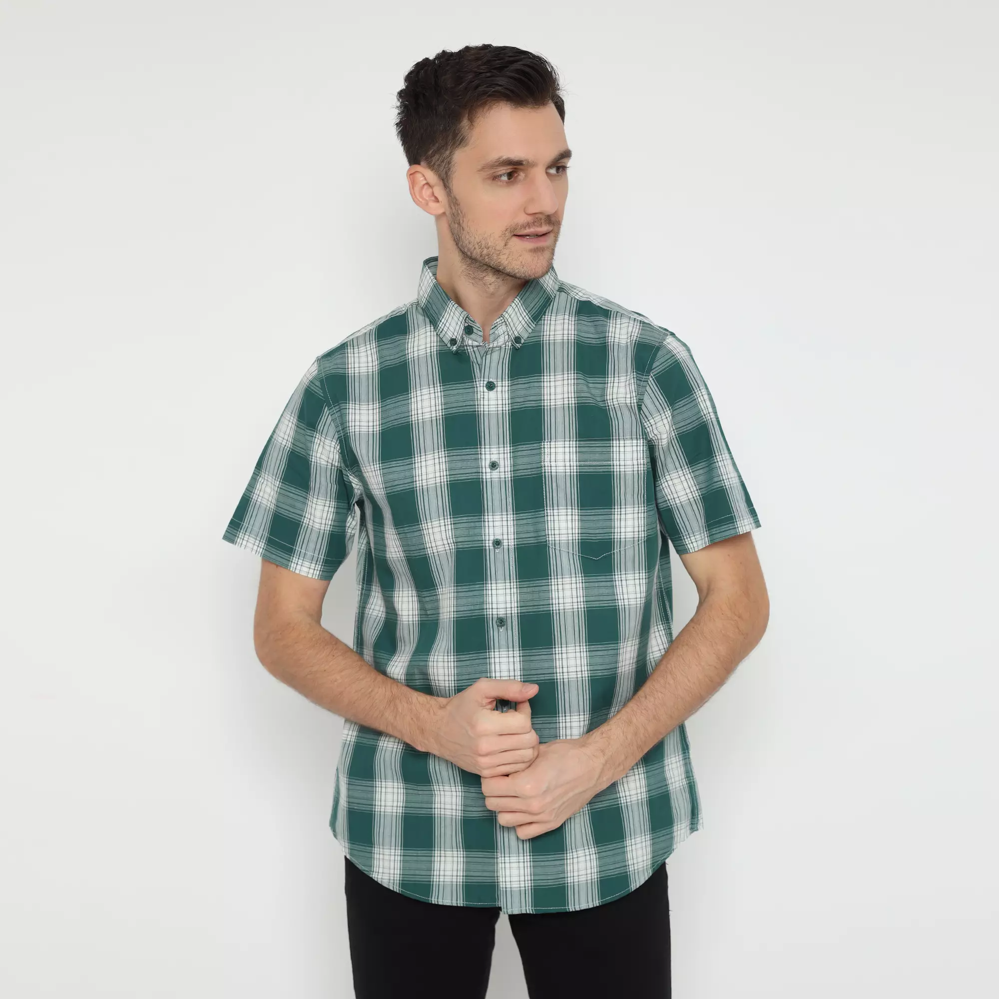 Platini Kemeja Kotak-Kotak Pria Lengan Pendek Green 73480